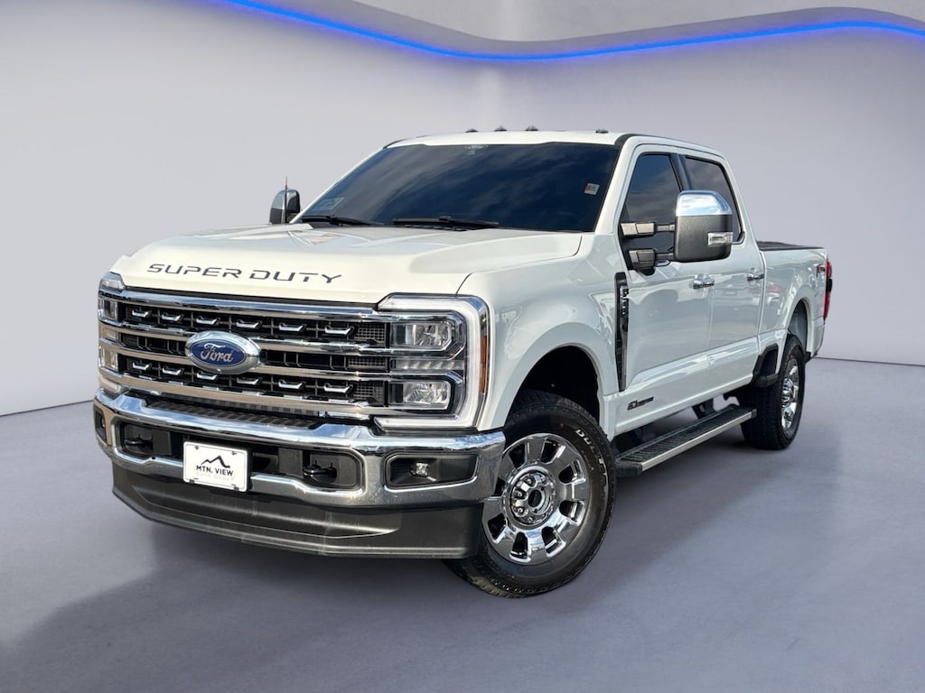 2025 Ford F-250SD Lariat F-250 SuperDuty Lariat, 4D Crew Cab, Power Stroke 6.7L V8 DI 32V OHV Turbodiesel, 10-Speed Automatic, 4WD, White Metallic, Baja, 4-Wheel Disc Brakes, 8 Speakers, ABS brakes, Adjustable pedals, Air Conditioning, Alloy wheels, AM/FM radio: SiriusXM with 360L, Auto High-beam Headlights, Auto-dimming Rear-View mirror, Automatic temperature control, BLIS with Cross-Traffic Alert, Brake assist, Bumpers: chrome, Chrome Package, Compass, Cruise Control, Delay-off headlights, Driver door bin, Driver vanity mirror, Dual AGM 68 AH Battery, Dual front impact airbags, Dual front side impact airbags, Electronic Stability Control, Emergency communication system: SYNC 4 911 Assist, Flow-Through Console, Front ActiveX Trimmed 40/Console/40 Seats, Front anti-roll bar, Front Bucket Seats, Front Center Armrest, Front dual zone A/C, Front fog lights, Front License Plate Bracket, Front reading lights, Fully automatic headlights, FX4 Off-Road Package, Garage door transmitter, GVWR: F-250 >10K Package, Heated and Cooled Seats, Heated door mirrors, Heated rear seats, Heated steering wheel, Hill Descent Control, Illuminated entry, Internet access capable: FordPass Connect 5G, LED Roof Clearance Lights, Low tire pressure warning, Memory seat, Navigation System, Off-Road Specifically Tuned Shock Absorbers, Order Code 608A, Outside temperature display, Overhead airbag, Overhead console, Panic alarm, Passenger door bin, Passenger vanity mirror, Pedal memory, Power door mirrors, Power driver seat, Power passenger seat, Power steering, Power windows, Privacy Glass, Radio: B&O Sound System by Bang and Olufsen, Rain sensing wipers, Rear Parking Sensors, Rear reading lights, Rear seat center armrest, Rear step bumper, Rear window defroster, Remote keyless entry, Security system, SiriusXM Radio with 360L, Split folding rear seat, Steering wheel mounted audio controls, SYNC 4 with Enhanced Voice Recognition, Tachometer, Telescoping steering wheel, Tilt steering wheel, Traction control, Trip computer, Turn signal indicator mirrors, Unique FX4 Off-Road Box Decal, Variably intermittent wipers, Ventilated front seats, Wheels: 18 Bright Machined and Carbonized Gray Aluminum, (Must finance with Ford Motor Credit to receive online pricing - see dealer for details.) Proudly, F-250 SuperDuty Lariat, 4D Crew Cab, Power Stroke 6.7L V8 DI 32V OHV Turbodiesel, 10-Speed Automatic, 4WD, White Metallic, Baja. Every Mtn View Ford Lincoln pre-owned vehicle is inspected, reconditioned, and priced to deliver unmatched value. From local