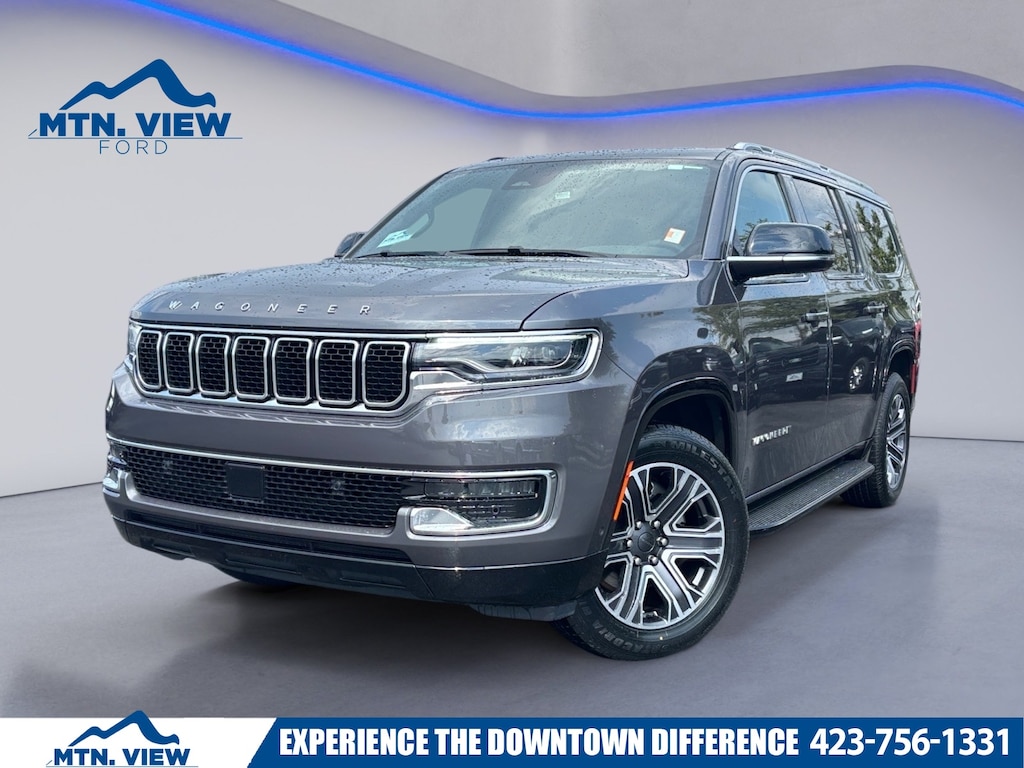 2024 Jeep Wagoneer L Base *MTN VIEW CERTIFIED*, (CLEAN CARFAX), MTN VIEW CERTIFIED Certified, 10 Speakers, 3 Panel Sunroof, 3.55 Rear Axle Ratio, 3rd row seats: bench, 4-Wheel Disc Brakes, ABS brakes, Adjustable pedals, Adjustable Roof Rail Crossbars, Air Conditioning, Alloy wheels, AM/FM radio: SiriusXM with 360L, Anti-whiplash front head restraints, Apple CarPlay/Android Auto, Audio memory, Auto-dimming door mirrors, Auto-dimming Rear-View mirror, Auto-leveling suspension, Automatic temperature control, Brake assist, Bumpers: body-color, Compass, Cruise Control, Delay-off headlights, Driver door bin, Driver vanity mirror, Driver's Seat Mounted Armrest, Dual front impact airbags, Dual front side impact airbags, Electronic Stability Control, Emergency communication system: Wagoneer Connect, Four wheel independent suspension, Front anti-roll bar, Front Bucket Seats, Front Center Armrest w/Storage, Front dual zone A/C, Front fog lights, Front reading lights, Fully automatic headlights, Garage door transmitter, Heated and Cooled Seats, Heated door mirrors, Heated steering wheel, Illuminated entry, Knee airbag, Leather Trimmed Bucket Seats, Low tire pressure warning, Memory seat, Navigation System, Normal Duty Suspension, Occupant sensing airbag, Outside temperature display, Overhead airbag, Overhead console, Panic alarm, Passenger door bin, Passenger seat mounted armrest, Passenger vanity mirror, Pedal memory, Power adjustable front head restraints, Power door mirrors, Power driver seat, Power Liftgate, Power passenger seat, Power steering, Power windows, Premium Group I, Quick Order Package 25E, Radio data system, Radio: Uconnect 5 Nav w/10.1 Display, Rear air conditioning, Rear anti-roll bar, Rear reading lights, Rear seat center armrest, Rear window defroster, Rear window wiper, Rearview Camera, Reclining 3rd row seat, Remote keyless entry, Reversible Carpet/Vinyl Cargo Mat, Security system, Speed-sensing steering, Speed-Sensitive Wipers, Split folding rear seat, Steering wheel memory, Steering wheel mounted audio controls, Tachometer, Telescoping steering wheel, Tilt steering wheel, Traction control, Trip computer, Turn signal indicator mirrors, Variably intermittent wipers, Ventilated front seats, Voltmeter, Wheels: 18 x 8.0 Aluminum Base Finish, Wheels: 20 x 9.0 Premium 2 Aluminum, (Must finance with Ford Motor Credit to receive online pricing - see dealer for details.) Proudly. Certified. Baltic Gray Metallic Clearcoat 8-Speed Automatic CARFAX One-Owner.