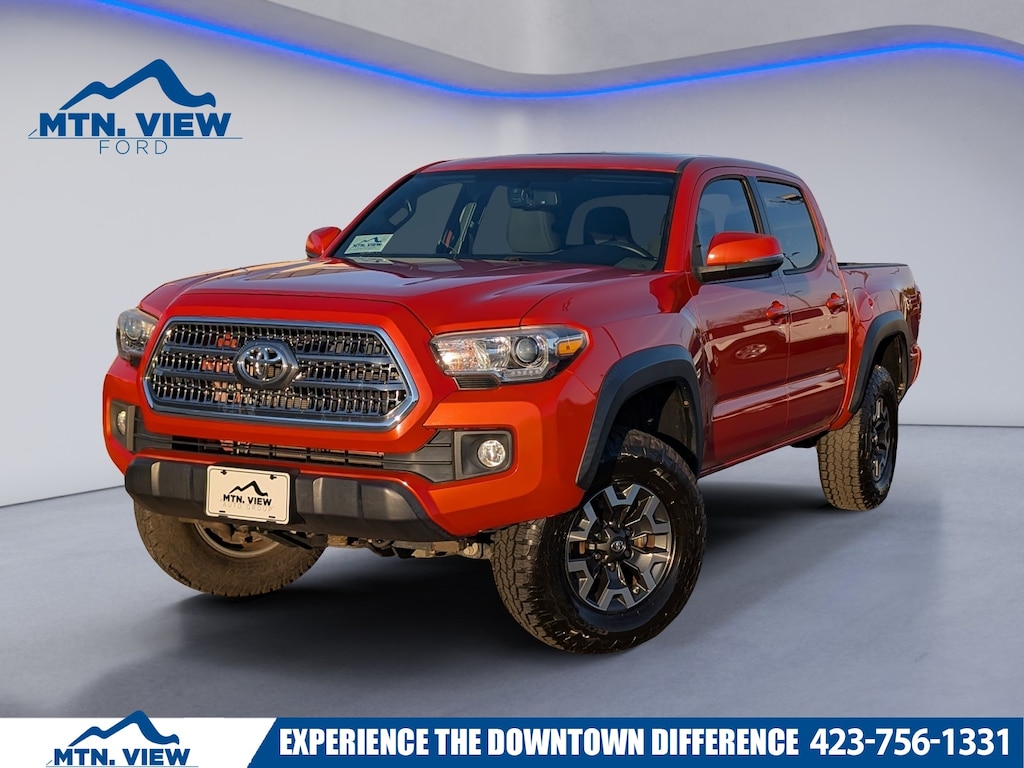 2017 Toyota Tacoma TRD Sport Tacoma TRD Sport, MTN VIEW CERTIFIED Certified, 4D Double Cab, V6, 6-Speed, 4WD, Inferno, 120V/400W Deck Mounted AC Power, 6 Speakers, ABS brakes, Air Conditioning, Alloy wheels, AM/FM radio: SiriusXM, Anti-whiplash front head restraints, Auto-Dimming Inside Rear-View Mirror w/Compass, Auto-dimming Rear-View mirror, Axle Ratio: 3.91, Brake assist, Bumpers: body-color, CD player, Color-Keyed Overfenders, Compass, Cruise Control, Cruise Control, Driver door bin, Dual front impact airbags, Dual front side impact airbags, Electronic Stability Control, Engine Immobilizer, Fabric Seat Trim (FD), Front anti-roll bar, Front Bucket Seats, Front Center Armrest, Front fog lights, Front reading lights, Front wheel independent suspension, Illuminated entry, Knee airbag, Leather Shift Knob, LED Daytime Running Lights, Low tire pressure warning, Navigation System, Occupant sensing airbag, Outside temperature display, Overhead airbag, Overhead console, Panic alarm, Passenger door bin, Power door mirrors, Power Sliding Rear Window w/Privacy Glass, Power steering, Power windows, Radio: Entune Premium w/AM/FM/CD/Nav/App Suite, Rear step bumper, Rearview Camera, Remote keyless entry, Remote Keyless Entry System, Security system, Smart Key w/Push Button Start, Speed-sensing steering, Split folding rear seat, Steering wheel mounted audio controls, Tachometer, Telescoping steering wheel, Tilt steering wheel, Traction control, Trip computer, Turn signal indicator mirrors, Variable Intermittent Wipers, Variably intermittent wipers, Wheels: 17 x 7.5 Machined Alloy, Wide Angle Front Fog Lamps, (Must finance with Ford Motor Credit to receive online pricing - see dealer for details.) Proudly, Tacoma TRD Sport, 4D Double Cab, V6, 6-Speed, 4WD, Inferno. Certified. Inferno Awards: * 2017 KBB.com Best Resale Value Awards * 2017 KBB.com 10 Most Awarded Brands 6-Speed