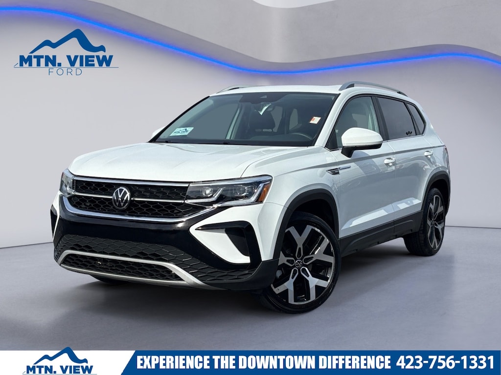 2023 Volkswagen Taos 1.5T SEL *MTN VIEW CERTIFIED*, (CLEAN CARFAX), MTN VIEW CERTIFIED Certified, 4-Wheel Disc Brakes, 5.20 Axle Ratio, 9 Speakers, ABS brakes, Active Blind Spot Monitor, Air Conditioning, Alloy wheels, AM/FM radio: SiriusXM with 360L, Auto High-beam Headlights, Auto-dimming Rear-View mirror, Auto-Dimming Rearview Mirror w/HomeLink Connect, Automatic temperature control, Brake assist, Bumpers: body-color, Carpeted MojoMats (Set of 4), Compass, Cruise Control, Delay-off headlights, Driver door bin, Driver vanity mirror, Dual front impact airbags, Dual front side impact airbags, Electronic Stability Control, Emergency communication system: VW Car-Net Safe & Secure 5-year, First Aid Kit, Four wheel independent suspension, Front anti-roll bar, Front Bucket Seats, Front Center Armrest, Front dual zone A/C, Front reading lights, Front Strut Rear Multi-Link Suspension, Fully automatic headlights, Heated & Ventilated Front Comfort Sport Seats, Heated and Cooled Seats, Heated door mirrors, Heated steering wheel, Illuminated entry, Leather Shift Knob, Low tire pressure warning, Navigation system: VW Car-Net Guide & Inform, Occupant sensing airbag, Outside temperature display, Overhead airbag, Overhead console, Panic alarm, Passenger door bin, Passenger vanity mirror, Perforated Vienna Leather Seating Surfaces, Power door mirrors, Power driver seat, Power moonroof, Power steering, Power windows, Radio data system, Radio: MIB3 Discover Media AM/FM/HD, Rain sensing wipers, Rear anti-roll bar, Rear Parking Sensors, Rear seat center armrest, Rear window defroster, Rear window wiper, Rearview Camera, Remote keyless entry, Security system, Speed-sensing steering, Split folding rear seat, Spoiler, Steering wheel mounted audio controls, Tachometer, Telescoping steering wheel, Tilt steering wheel, Traction control, Trip computer, Variably intermittent wipers, Ventilated front seats, Ventilated Front Seats Credit, Wheels: 19 2-Tone Machined Alloy, (Must finance with Ford Motor Credit to receive online pricing - see dealer for details.) Proudly. Certified. Pure White 7-Speed DSG Automatic with Tiptronic Clean CARFAX.