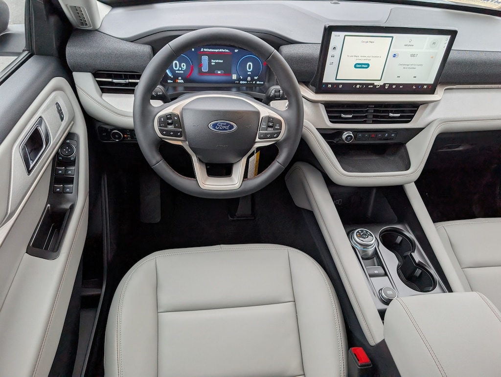 Explorer 3rd row seats: bench, 4-Wheel Disc Brakes, 6 Speakers, ABS brakes, Air Conditioning, Alloy wheels, AM/FM radio: SiriusXM with 360L, AM/FM Stereo, Apple CarPlay/Android Auto, Auto High-beam Headlights, Automatic temperature control, Brake assist, Bumpers: body-color, Compass, Cruise Control, Delay-off headlights, Driver door bin, Driver vanity mirror, Dual front impact airbags, Dual front side impact airbags, Electronic Stability Control, Emergency communication system: 911 Assist, Four wheel independent suspension, Front anti-roll bar, Front Bucket Seats, Front Center Armrest, Front dual zone A/C, Front reading lights, Fully automatic headlights, Heated door mirrors, Illuminated entry, Knee airbag, Low tire pressure warning, Navigation System, Occupant sensing airbag, Outside temperature display, Overhead airbag, Overhead console, Panic alarm, Passenger door bin, Passenger vanity mirror, Power door mirrors, Power driver seat, Power steering, Power windows, Rear air conditioning, Rear anti-roll bar, Rear reading lights, Rear window defroster, Rear window wiper, Rearview Camera, Remote keyless entry, Security system, Speed-sensing steering, Speed-Sensitive Wipers, Split folding rear seat, Spoiler, Steering wheel mounted audio controls, Tachometer, Telescoping steering wheel, Tilt steering wheel, Traction control, Trip computer, Variably intermittent wipers, Wheels: 18" Sparkle Silver-Painted Aluminum, (Must finance with Ford Motor Credit to receive online pricing - see dealer for details.) Proudly. Active