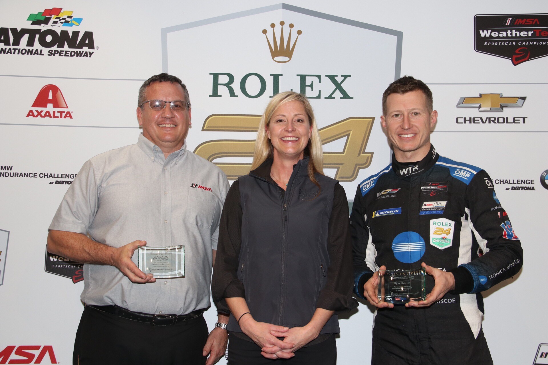 CHATTANOOGA, Tenn. (Jan. 23, 2020) - Veteran race car driver Ryan Briscoe was named the recipient of the fourth annual Austin Hatcher Foundation for Pediatric Cancer Humanitarian Award on Thursday at Daytona International Speedway. The award, presented by Austin Hatcher Foundation President Amy Jo Osborn, honors individuals for their efforts in helping the foundation provide essential services to young cancer patients and their families.
