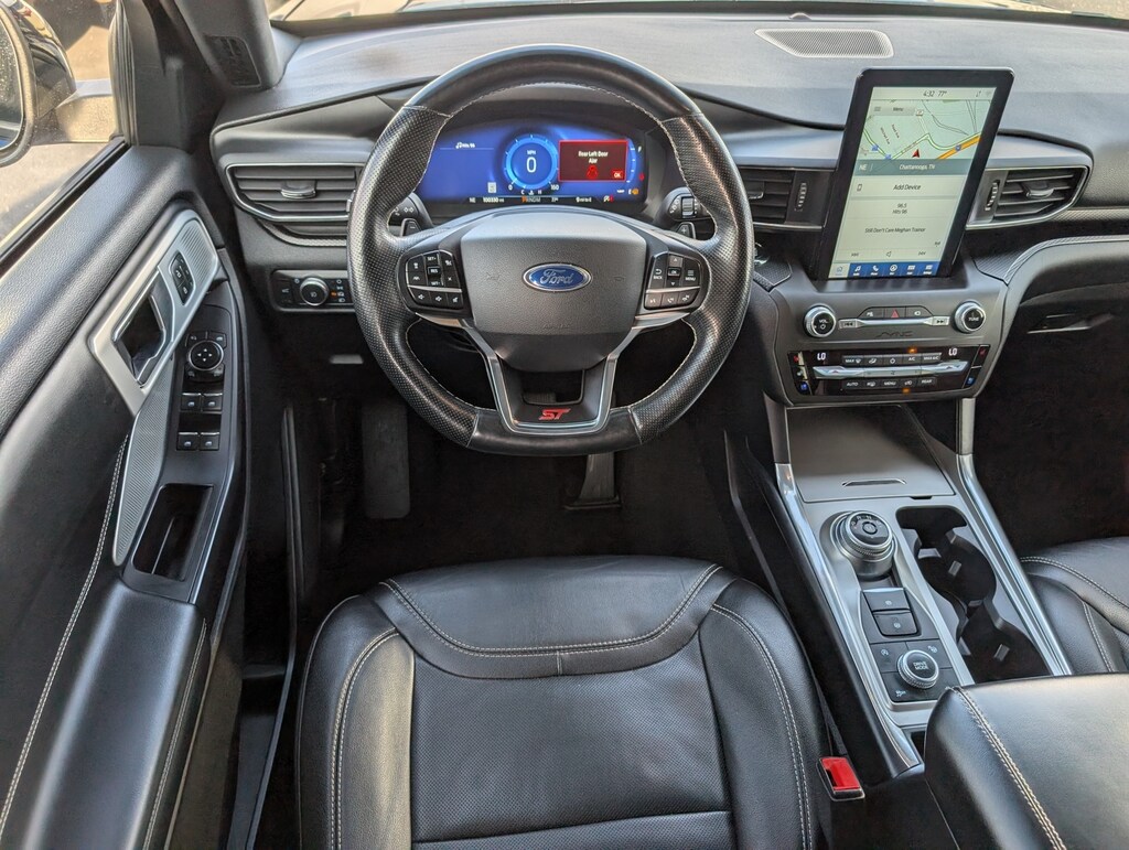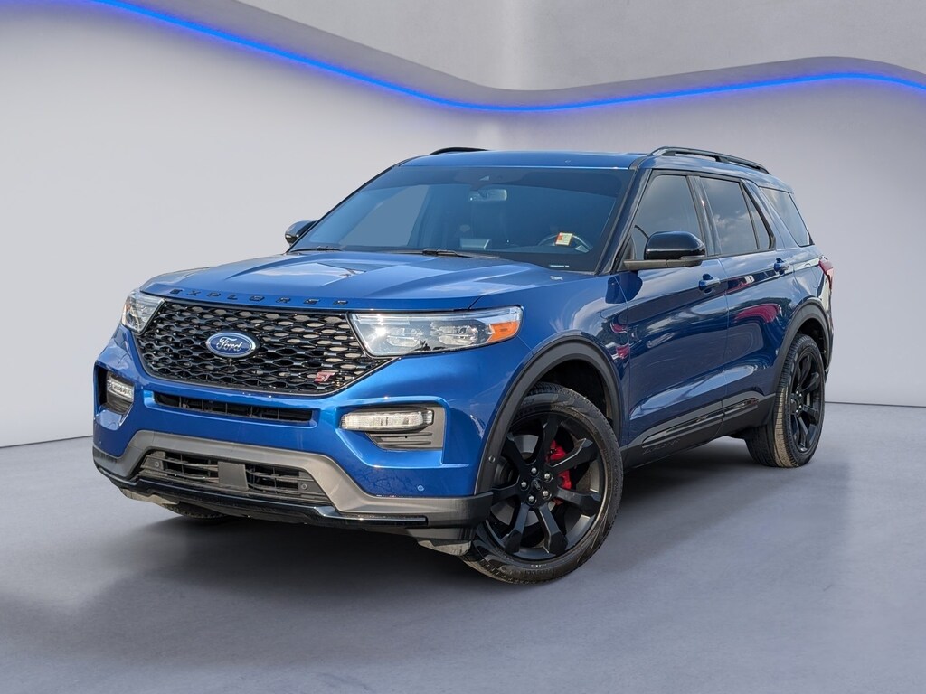 2020 Ford Explorer ST Explorer ST, 4D Sport Utility, 3.0L EcoBoost V6, 10-Speed Automatic, 4WD, Blue, Ebony Leather, 10.1 LCD Capacitive Portrait Touchscreen, 2 Additional Speakers, Equipment Group 400A, Leather Htd/Ventilated Sport Captain's Chairs, Premium Technology Package, 12 Speakers, 20 Machined Aluminum w/Painted Pockets Wheels, 3.58 Non-Limited-Slip Rear Axle Ratio, 3rd row seats: bench, 4-Wheel Disc Brakes, ABS brakes, Air Conditioning, Alloy wheels, AM/FM radio: SiriusXM, Auto High-beam Headlights, Auto-dimming door mirrors, Auto-dimming Rear-View mirror, Automatic temperature control, Brake assist, Bumpers: body-color, Compass, Cruise Control, Delay-off headlights, Driver door bin, Driver vanity mirror, Dual front impact airbags, Dual front side impact airbags, Dual-Headrest Rear Seat Entertainment System, Electronic Stability Control, Emergency communication system: SYNC 3 911 Assist, FordPass Connect, Four wheel independent suspension, Front & Second Row Floor Liners, Front anti-roll bar, Front Bucket Seats, Front Center Armrest, Front dual zone A/C, Front fog lights, Front reading lights, Fully automatic headlights, Garage door transmitter: HomeLink, Heated and Cooled Seats, Heated door mirrors, Heated rear seats, Heated steering wheel, Illuminated entry, Knee airbag, Leather steering wheel, Low tire pressure warning, Memory seat, Navigation System, Occupant sensing airbag, Outside temperature display, Overhead airbag, Overhead console, Panic alarm, Passenger door bin, Passenger vanity mirror, Performance Front & Rear Brakes, Power door mirrors, Power driver seat, Power Liftgate, Power passenger seat, Power steering, Power windows, Radio data system, Radio: B&O Sound System by Bang & Olufsen, Rain sensing wipers, Rear air conditioning, Rear anti-roll bar, Rear reading lights, Rear window defroster, Rear window wiper, Rearview Camera, Remote keyless entry, Roof rack: rails only, Security system, Speed-sensing steering, Speed-Sensitive Wipers, Split folding rear seat, Spoiler, Sport steering wheel, ST Street Pack, Steering wheel memory, Steering wheel mounted audio controls, SYNC 3 Communications & Entertainment System, SYNC 3/Apple CarPlay/Android Auto, Tachometer, Telescoping steering wheel, Tilt steering wheel, Traction control, Trip computer, Turn signal indicator mirrors, Twin Panel Moonroof, Variably intermittent wipers, Ventilated front seats, Voice-Activated Touchscreen Navigation System, Wheels: 21 Aluminum, (Must finance with Ford Motor Credit to receive online pricing - see dealer