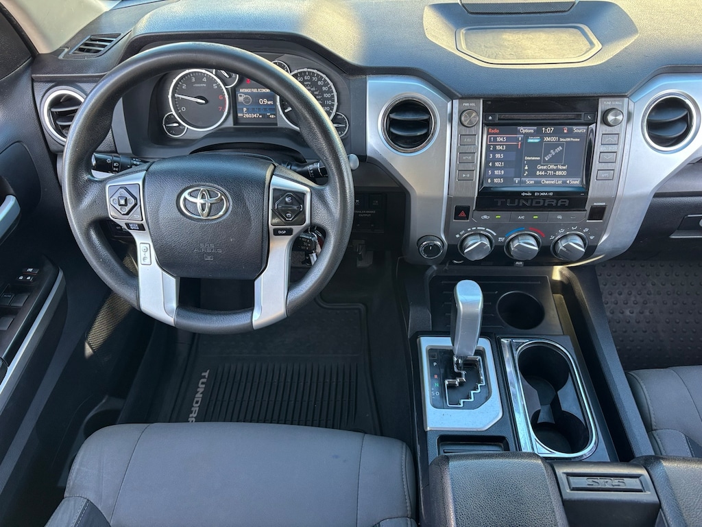 2016 Toyota Tundra SR5 (CLEAN CARFAX), Tundra SR5, 4D Double Cab, 5.7L 8-Cylinder SMPI DOHC, 6-Speed Automatic Electronic with Overdrive, 4WD, Graphite Cloth, 4-Wheel Disc Brakes, 4.30 Axle Ratio, ABS brakes, Air Conditioning, Brake assist, CD player, Cruise Control, Driver door bin, Dual front impact airbags, Dual front side impact airbags, Electronic Stability Control, Front anti-roll bar, Front reading lights, Front wheel independent suspension, Heated door mirrors, Illuminated entry, Knee airbag, Low tire pressure warning, Occupant sensing airbag, Outside temperature display, Overhead airbag, Overhead console, Panic alarm, Passenger door bin, Power door mirrors, Power steering, Power windows, Rear reading lights, Rear step bumper, Rearview Camera, Remote keyless entry, Speed-sensing steering, Split folding rear seat, Tachometer, Tilt steering wheel, Traction control, Trip computer, Variably intermittent wipers, Voltmeter, (Must finance with Ford Motor Credit to receive online pricing - see dealer for details.) Proudly, Tundra SR5, 4D Double Cab, 5.7L 8-Cylinder SMPI DOHC, 6-Speed Automatic Electronic with Overdrive, 4WD, Graphite Cloth. Super White 6-Speed Automatic Electronic with Overdrive Clean CARFAX.