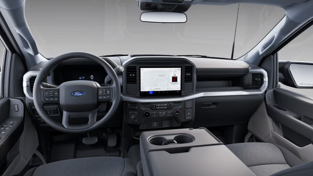 The base F-150 XL has an electronic 10-speed automatic transmission with SelectShift, a 12-inch touchscreen, a large, black grille, and LED headlamps. Pro Power Onboard generator outlets in the truck bed are available. You can choose regular cab, SuperCab, or SuperCrew configurations with 5.5-foot, 6.5-foot, or 8-foot bed lengths. All-wheel drive is optional as well.
