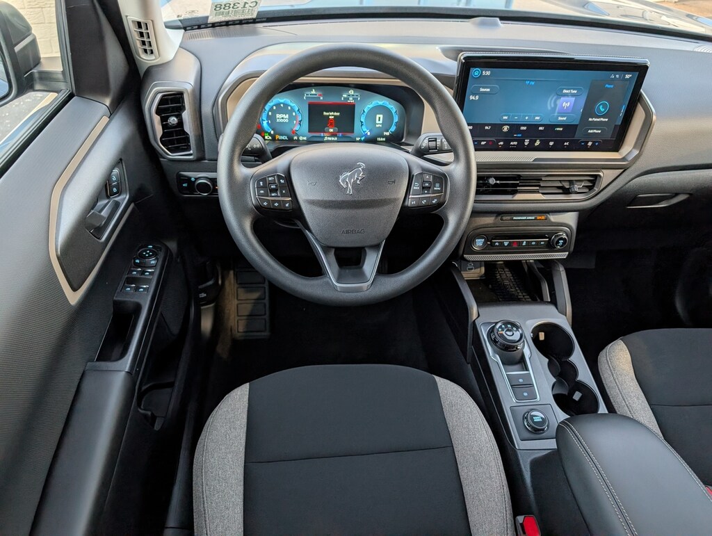 Bronco Sport 4-Wheel Disc Brakes, 6 Speakers, ABS brakes, Air Conditioning, Alloy wheels, AM/FM radio: SiriusXM, AM/FM Stereo, Auto High-beam Headlights, Automatic temperature control, Brake assist, Cloth w/Easy-to-Clean Front Bucket Seats, Compass, Cruise Control, Delay-off headlights, Driver door bin, Driver vanity mirror, Dual front impact airbags, Dual front side impact airbags, Electronic Stability Control, Emergency communication system: SYNC 4 911 Assist, Equipment Group 200A, Four wheel independent suspension, Front anti-roll bar, Front Bucket Seats, Front Center Armrest, Front reading lights, Fully automatic headlights, Heated door mirrors, Illuminated entry, Knee airbag, Low tire pressure warning, Occupant sensing airbag, Outside temperature display, Overhead airbag, Overhead console, Panic alarm, Passenger door bin, Passenger vanity mirror, Power door mirrors, Power steering, Power windows, Radio data system, Rear anti-roll bar, Rear Parking Sensors, Rear reading lights, Rear seat center armrest, Rear window defroster, Rear window wiper, Remote keyless entry, Security system, SiriusXM, Speed-sensing steering, Speed-Sensitive Wipers, Split folding rear seat, Steering wheel mounted audio controls, SYNC 4 w/Enhanced Voice Recognition, Tachometer, Telescoping steering wheel, Tilt steering wheel, Traction control, Trip computer, Variably intermittent wipers, Wheels: 17" Carbonized Gray-Painted Aluminum, (Must finance with Ford Motor Credit to receive online pricing - see dealer for details.) Proudly. Big Bend