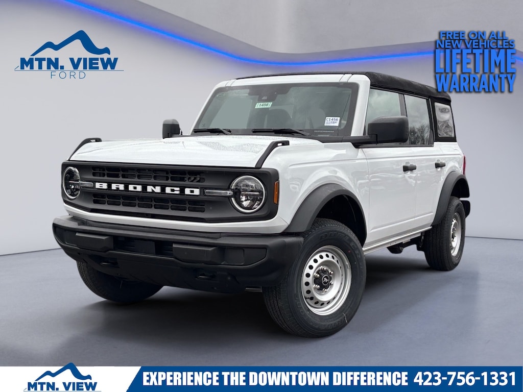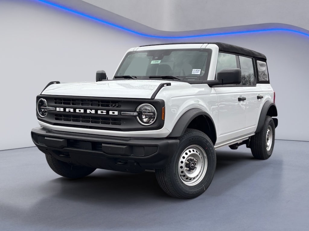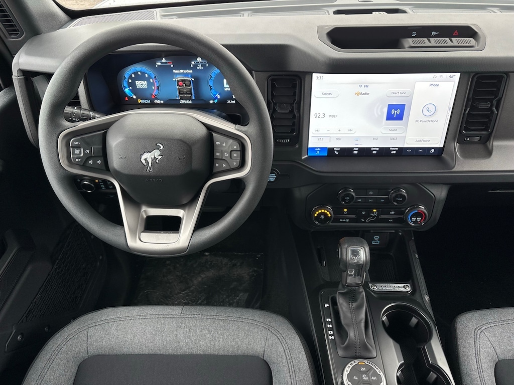 Bronco 4-Wheel Disc Brakes, 4.46 Axle Ratio, 7 Speakers, ABS brakes, Air Conditioning, AM/FM radio: SiriusXM with 360L, AM/FM Stereo, Auto High-beam Headlights, Brake assist, Cloth Bucket Seats, Compass, Cruise Control, Delay-off headlights, Driver door bin, Driver vanity mirror, Dual front impact airbags, Dual front side impact airbags, Electronic Stability Control, Emergency communication system: 911 Assist, Equipment Group 101A, Front anti-roll bar, Front Bucket Seats, Front Center Armrest, Front reading lights, Front wheel independent suspension, Fully automatic headlights, Heated door mirrors, Illuminated entry, Integrated roll-over protection, Internet access capable: FordPass Connect, Low tire pressure warning, Occupant sensing airbag, Outside temperature display, Overhead airbag, Overhead console, Panic alarm, Passenger door bin, Passenger vanity mirror, Power door mirrors, Power steering, Power windows, Radio data system, Rearview Camera, Remote keyless entry, Security system, SiriusXM w/360L, Split folding rear seat, Steering wheel mounted audio controls, SYNC 4, Tachometer, Telescoping steering wheel, Tilt steering wheel, Traction control, Trip computer, Variably intermittent wipers, Wheels: 16" Bright Polished Silver-Painted Steel, (Must finance with Ford Motor Credit to receive online pricing - see dealer for details.) Proudly.