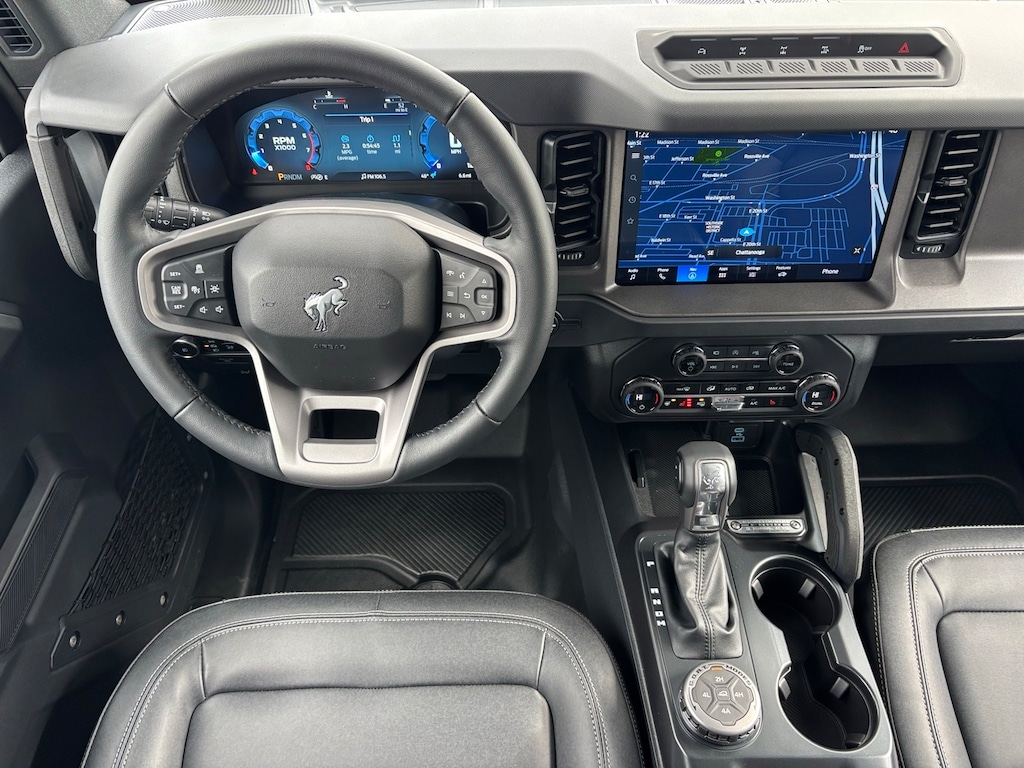 Bronco 2-Door Intelligent Access w/Lock/Unlock, 360-Degree Camera, 4-Wheel Disc Brakes, 4.7 Axle Ratio, 7 Speakers, ABS brakes, Adaptive Cruise Control, Air Conditioning, Alloy wheels, AM/FM radio: SiriusXM with 360L, AM/FM Stereo, Ambient Footwell Lighting, Auto High-Beam Headlamps, Auto High-beam Headlights, Auto-dimming Rear-View mirror, BLIS Blind Spot Information System, Brake assist, Compass, Connected Navigation, Cruise Control, Delay-off headlights, Dr & Pass Illuminated Sliding Visor Vanity Mirrors, Driver door bin, Driver vanity mirror, Dual front impact airbags, Dual front side impact airbags, Dual Smart Charging USB Ports, Dual-Zone Electronic Automatic Temperature Control, Electronic Stability Control, Emergency communication system: 911 Assist, Equipment Group 334A Lux Package, Evasive Steering Assist, Front anti-roll bar, Front Bucket Seats, Front Center Armrest, Front fog lights, Front Parking Sensors, Front reading lights, Front Row Heated Seats, Front wheel independent suspension, Fully automatic headlights, Hard Top Sound Deadening Headliner, Heated and Cooled Seats, Heated door mirrors, Heated steering wheel, Illuminated entry, Information on Demand Panel, Integrated roll-over protection, Internet access capable: FordPass Connect, Lane-Keeping System, Leather Shift Knob, Low tire pressure warning, Marine Grade Vinyl Heated Bucket Seats, Occupant sensing airbag, Outside temperature display, Overhead airbag, Overhead console, Panic alarm, Passenger door bin, Passenger vanity mirror, Power door mirrors, Power Outlet - Back Side of Center Floor Console, Power steering, Power windows, Pre-Collision Assist w/Automatic Emergency Braking, Radio data system, Radio: B&O Sound System by Bang & Olufsen, Rear Parking Sensors, Rear-View Camera, Rear-Window Defroster & Washer, Rearview Camera, Remote keyless entry, Security system, Shadow Black Painted Hard Top, Sideview Mirrors, SiriusXM w/360L, Split folding rear seat, Steering wheel mounted audio controls, SYNC 4, Tachometer, Telescoping steering wheel, Tilt steering wheel, Traction control, Trip computer, Universal Garage Door Opener, Variably intermittent wipers, Voltmeter, Wheels: 17" Carbonized Gray-Painted Aluminum, (Must finance with Ford Motor Credit to receive online pricing - see dealer for details.) Proudly. Badlands