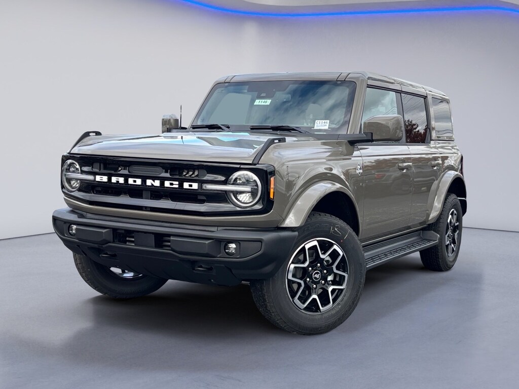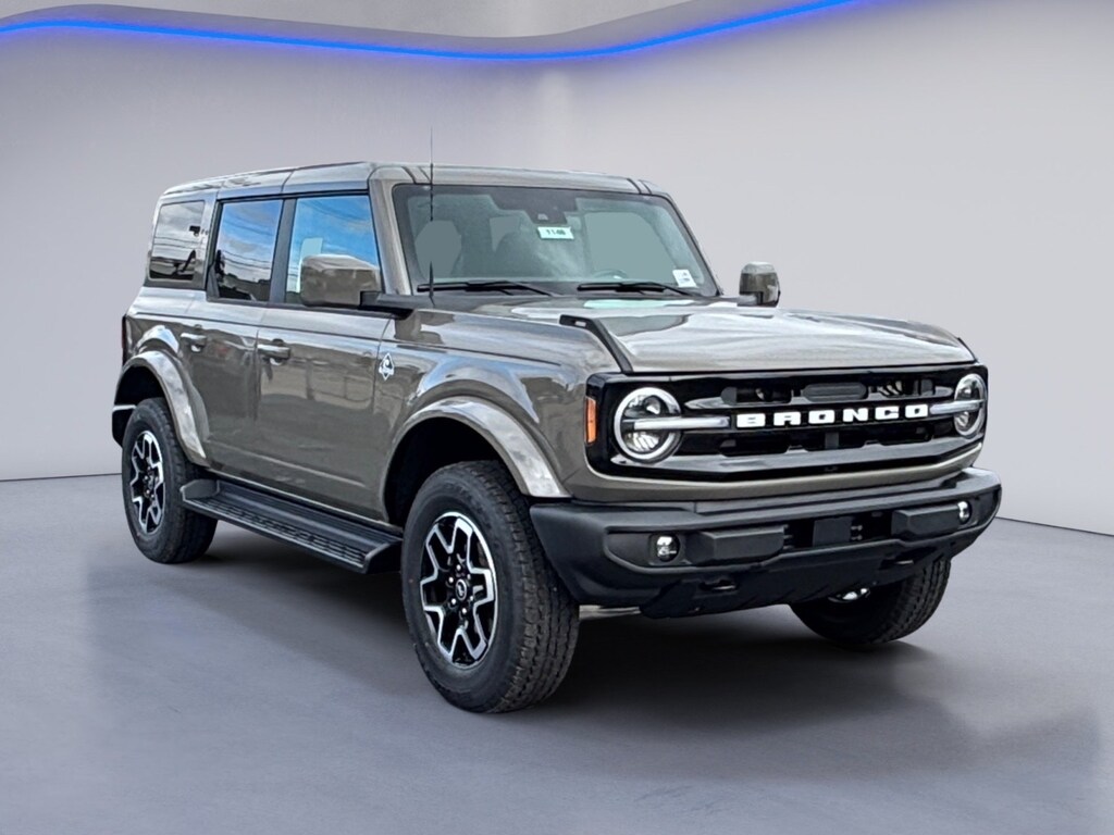 Bronco 18" Bright Machined Aluminum Wheels, 3.73 Axle Ratio, 4-Wheel Disc Brakes, 7 Speakers, ABS brakes, Air Conditioning, Alloy wheels, AM/FM radio: SiriusXM with 360L, AM/FM Stereo, Auto High-beam Headlights, Auto-dimming Rear-View mirror, Automatic temperature control, Brake assist, Compass, Connected Navigation, Cruise Control, Delay-off headlights, Driver door bin, Driver vanity mirror, Dual front impact airbags, Dual front side impact airbags, Electronic Stability Control, Emergency communication system: 911 Assist, Equipment Group 312A Mid Package, Front anti-roll bar, Front Bucket Seats, Front Center Armrest, Front dual zone A/C, Front fog lights, Front License Plate Bracket, Front reading lights, Front wheel independent suspension, Fully automatic headlights, Hard Top Sound Deadening Headliner, Heated and Cooled Seats, Heated door mirrors, Heated Leather-Trimmed/Vinyl Bucket Seats, Heated steering wheel, Illuminated entry, Integrated roll-over protection, Leather Shift Knob, Low tire pressure warning, Navigation system: Connected Navigation, Occupant sensing airbag, Outside temperature display, Overhead airbag, Overhead console, Painted Hard Top, Panic alarm, Passenger door bin, Passenger vanity mirror, Power door mirrors, Power driver seat, Power passenger seat, Power steering, Power windows, Radio data system, Rear seat center armrest, Rear-Window Defroster & Washer, Rearview Camera, Remote keyless entry, Security system, SiriusXM w/360L, Split folding rear seat, Steering wheel mounted audio controls, SYNC 4, Tachometer, Telescoping steering wheel, Tilt steering wheel, Traction control, Trip computer, Variably intermittent wipers, Voltmeter, (Must finance with Ford Motor Credit to receive online pricing - see dealer for details.) Proudly. Outer Banks