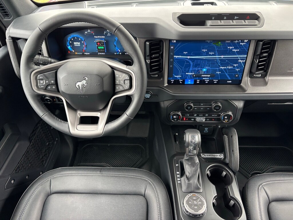 Bronco 2-Door Intelligent Access w/Lock/Unlock, 4-Wheel Disc Brakes, 7 Speakers, ABS brakes, Air Conditioning, Alloy wheels, AM/FM radio: SiriusXM with 360L, AM/FM Stereo, Ambient Footwell Lighting, Auto High-Beam Headlamps, Auto High-beam Headlights, Auxiliary Switches, Black Appearance Package, Black Diamond Package, Black Molded-In-Color Door Handles, Black Molded-In-Color Fender Flares, Black Molded-In-Color Sideview Mirror Caps, Black-Painted Molded-In-Color Grille, BLIS Blind Spot Information System, Brake assist, Cloth Bucket Seats, Compass, Connected Navigation, Cruise Control, Delay-off headlights, Dr & Pass Illuminated Sliding Visor Vanity Mirrors, Driver door bin, Driver vanity mirror, Dual front impact airbags, Dual front side impact airbags, Dual Smart Charging USB Ports, Dual-Zone Electronic Automatic Temperature Control, Electronic Stability Control, Emergency communication system: 911 Assist, Equipment Group 222A Mid Package, Front anti-roll bar, Front Bucket Seats, Front Center Armrest, Front reading lights, Front Row Heated Seats, Front wheel independent suspension, Fully automatic headlights, Hard Top Sound Deadening Headliner, Heated door mirrors, Illuminated entry, Integrated roll-over protection, Lane-Keeping System, Leather Shift Knob, LED Fog Lamps, Low tire pressure warning, Occupant sensing airbag, Outside temperature display, Overhead airbag, Overhead console, Panic alarm, Passenger door bin, Passenger vanity mirror, Powder Coated Steel Front & Rear Bumpers, Power door mirrors, Power Outlet - Back Side of Center Floor Console, Power steering, Power windows, Pre-Collision Assist w/Automatic Emergency Braking, Radio data system, Rear Parking Sensors, Rear-View Camera, Rear-Window Defroster & Washer, Rearview Camera, Remote keyless entry, Rock Rails, Security system, Shadow Black Painted Hard Top, SiriusXM w/360L, Split folding rear seat, Steering wheel mounted audio controls, SYNC 4, Tachometer, Telescoping steering wheel, Tilt steering wheel, Traction control, Trip computer, Variably intermittent wipers, Washout Capable Rubberized Flooring, Wheels: 17" Black High Gloss Painted Aluminum, Wheels: 17" Carbonized Gray-Painted Aluminum, (Must finance with Ford Motor Credit to receive online pricing - see dealer for details.) Proudly. Big Bend