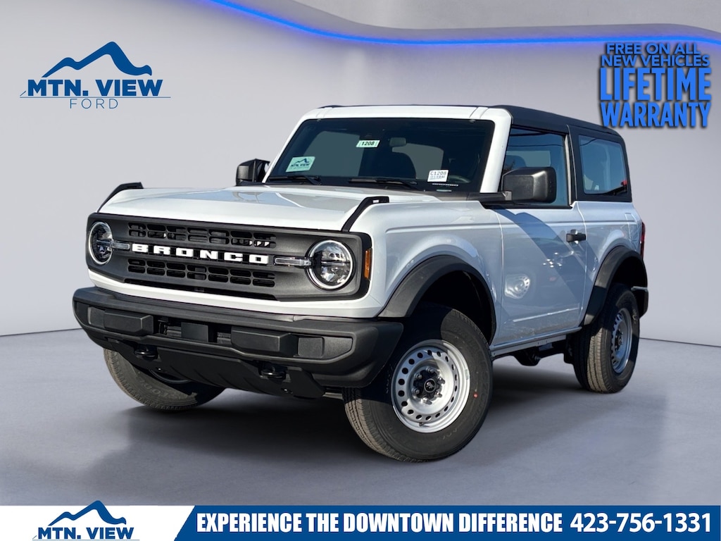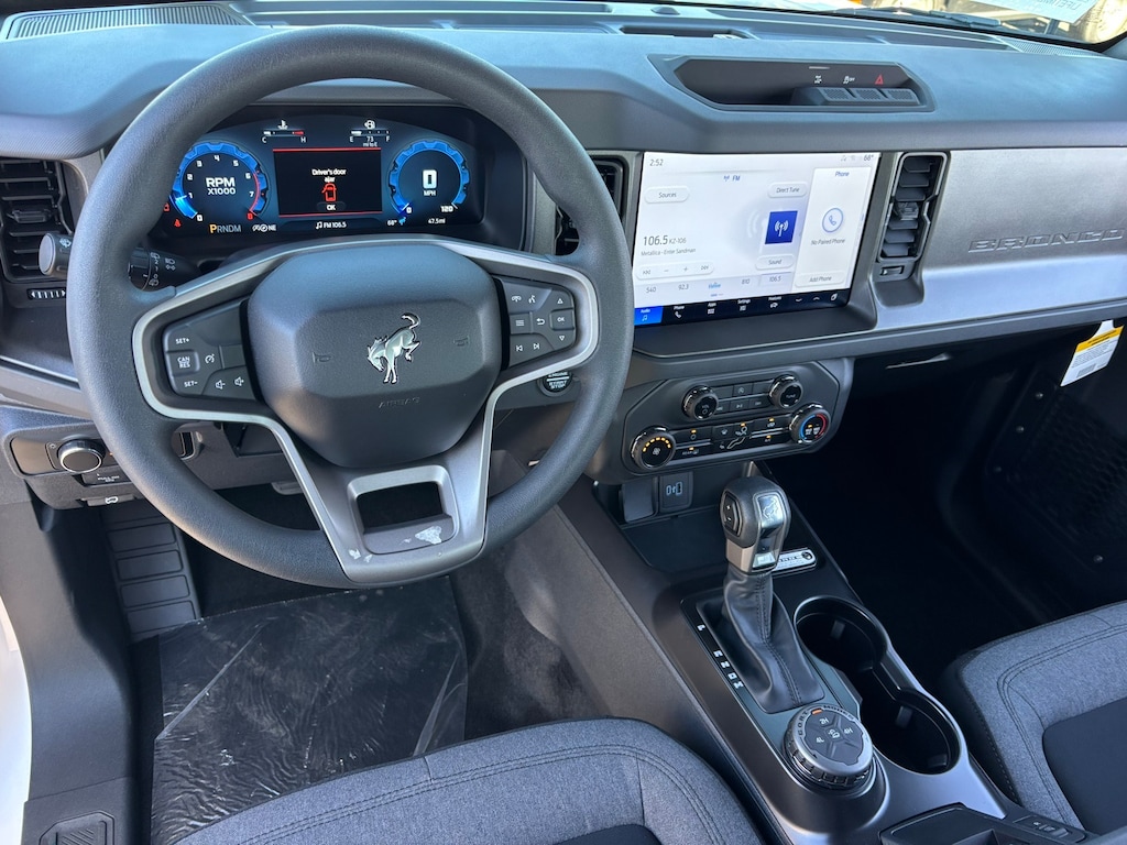 Bronco 4-Wheel Disc Brakes, 4.46 Axle Ratio, 7 Speakers, ABS brakes, Air Conditioning, AM/FM radio: SiriusXM with 360L, AM/FM Stereo, Auto High-beam Headlights, Brake assist, Cloth Bucket Seats, Compass, Convertible HardTop, Convertible roof lining, Cruise Control, Delay-off headlights, Driver door bin, Driver vanity mirror, Dual front impact airbags, Dual front side impact airbags, Electronic Stability Control, Emergency communication system: 911 Assist, Equipment Group 101A, Front anti-roll bar, Front Bucket Seats, Front Center Armrest, Front reading lights, Front wheel independent suspension, Fully automatic headlights, Glass rear window, Heated door mirrors, Illuminated entry, Integrated roll-over protection, Low tire pressure warning, Occupant sensing airbag, Outside temperature display, Overhead airbag, Overhead console, Panic alarm, Passenger door bin, Passenger vanity mirror, Power door mirrors, Power steering, Power windows, Radio data system, Rear window defroster, Rear window wiper, Rearview Camera, Remote keyless entry, Security system, SiriusXM w/360L, Split folding rear seat, Steering wheel mounted audio controls, SYNC 4, Tachometer, Telescoping steering wheel, Tilt steering wheel, Traction control, Trip computer, Variably intermittent wipers, Wheels: 16" Bright Polished Silver-Painted Steel, (Must finance with Ford Motor Credit to receive online pricing - see dealer for details.) Proudly.