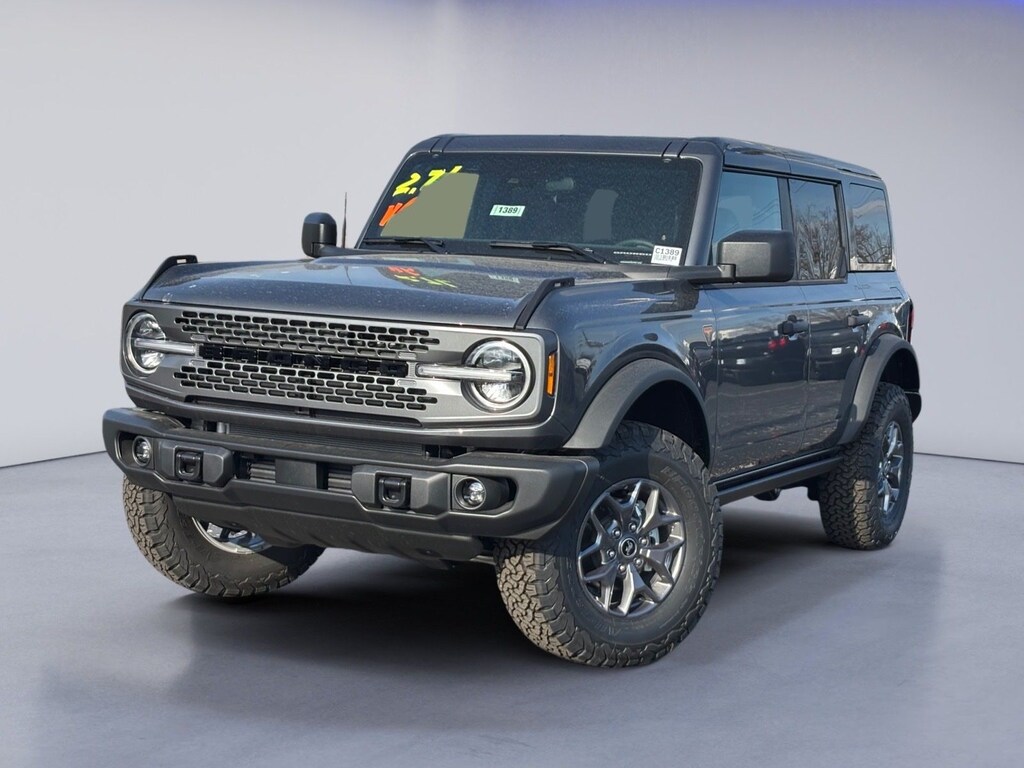Bronco Bronco Badlands, 4D Sport Utility, 2.7L EcoBoost V6, 10-Speed Automatic, 4WD, Gray Metallic, Black Onyx Vinyl, 2-Door Intelligent Access w/Lock/Unlock, Ambient Footwell Lighting, Connected Navigation, Dr & Pass Illuminated Sliding Visor Vanity Mirrors, Dual Smart Charging USB Ports, Dual-Zone Electronic Automatic Temperature Control, Equipment Group 332A Mid Package, Front Row Heated Seats, Power Outlet - Back Side of Center Floor Console, Rear Parking Sensors, 4-Wheel Disc Brakes, 4.7 Axle Ratio, 7 Speakers, ABS brakes, Air Conditioning, Alloy wheels, AM/FM radio: SiriusXM with 360L, AM/FM Stereo, Auto High-Beam Headlamps, Auto High-beam Headlights, Auto-dimming Rear-View mirror, BLIS Blind Spot Information System, Brake assist, Compass, Cruise Control, Delay-off headlights, Driver door bin, Driver vanity mirror, Dual front impact airbags, Dual front side impact airbags, Electronic Stability Control, Emergency communication system: 911 Assist, Front anti-roll bar, Front Bucket Seats, Front Center Armrest, Front fog lights, Front reading lights, Front wheel independent suspension, Fully automatic headlights, Hard Top Sound Deadening Headliner, Heated and Cooled Seats, Heated door mirrors, Heated steering wheel, Illuminated entry, Integrated roll-over protection, Internet access capable: FordPass Connect, Lane-Keeping System, Leather Shift Knob, Low tire pressure warning, Marine Grade Vinyl Heated Bucket Seats, Occupant sensing airbag, Outside temperature display, Overhead airbag, Overhead console, Panic alarm, Passenger door bin, Passenger vanity mirror, Power door mirrors, Power steering, Power windows, Pre-Collision Assist w/Automatic Emergency Braking, Radio data system, Rear-View Camera, Rear-Window Defroster & Washer, Rearview Camera, Remote keyless entry, Security system, Shadow Black Painted Hard Top, SiriusXM w/360L, Split folding rear seat, Steering wheel mounted audio controls, SYNC 4, Tachometer, Telescoping steering wheel, Tilt steering wheel, Traction control, Trip computer, Variably intermittent wipers, Voltmeter, Wheels: 17" Carbonized Gray-Painted Aluminum, (Must finance with Ford Motor Credit to receive online pricing - see dealer for details.) Proudly, Bronco Badlands, 4D Sport Utility, 2.7L EcoBoost V6, 10-Speed Automatic, 4WD, Gray Metallic, Black Onyx Vinyl, 2-Door Intelligent Access w/Lock/Unlock, Ambient Footwell Lighting, Connected Navigation, Dr & Pass Illuminated Sliding Visor Vanity Mirrors, Dual Smart Charging USB Ports, Dual-Zone Electronic Automatic Temperature Control, Equipment Group 332A Mid Package, Front Row Heated Seats, Power Outlet - Back Side of Center Floor Console, Rear Parking Sensors. Badlands