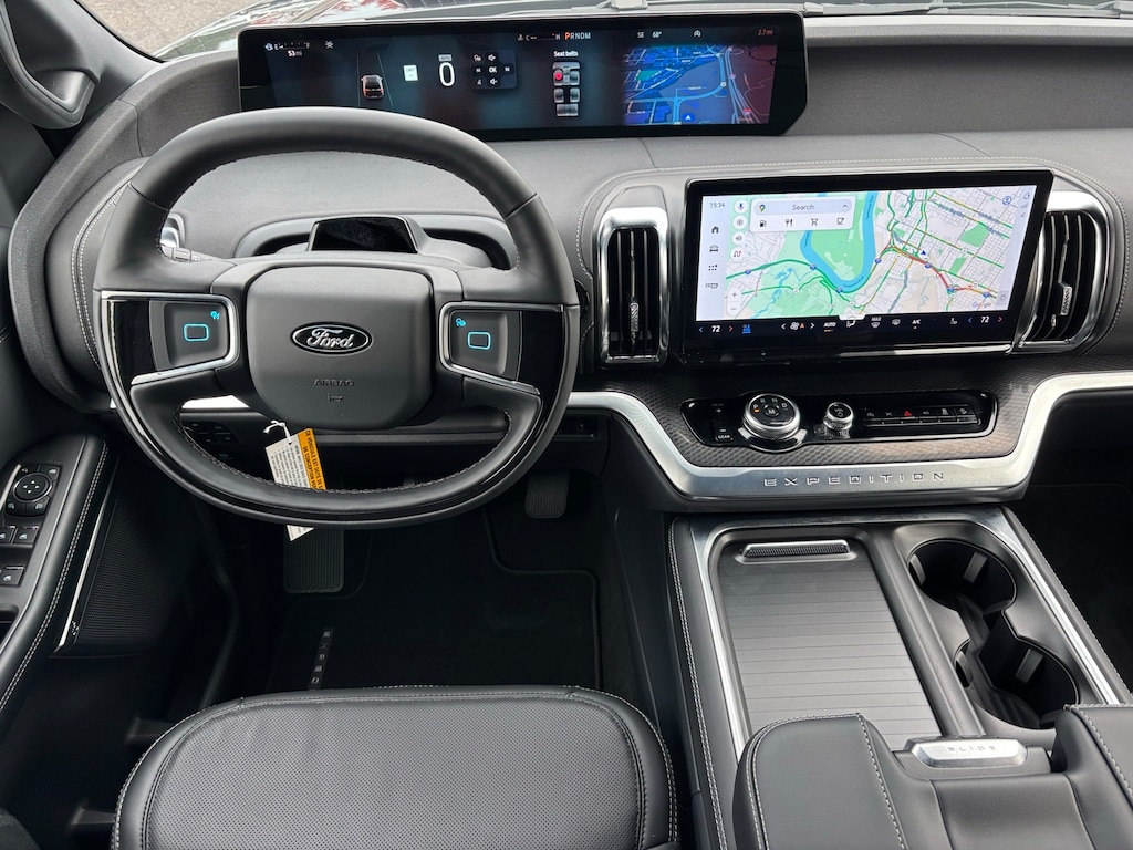 Expedition Max 10 Speakers, 2nd Row Power-Folding Captain's Chairs, 3.73 Axle Ratio, 3rd row seats: split-bench, 4-Wheel Disc Brakes, ABS brakes, Adjustable pedals, Air Conditioning, Alloy wheels, AM/FM radio: SiriusXM with 360L, Apple CarPlay/Android Auto, Auto High-beam Headlights, Auto-dimming door mirrors, Auto-dimming Rear-View mirror, Automatic temperature control, Black Belt Molding, Black Expedition Lettering On Hood, Black Headlamp Bezel w/Ebony Trim Applique, Black Platinum Badge On Tailgate, Black Roof Rails, Brake assist, Bumpers: body-color, Carbon Black Front Bumper/Fascia, Compass, Cruise Control, Delay-off headlights, Driver door bin, Driver vanity mirror, Dual front impact airbags, Dual front side impact airbags, Electronic Stability Control, Emergency communication system: 911 Assist, Engine Sound Enhancer, Equipment Group 600A Standard Package, Four wheel independent suspension, Front anti-roll bar, Front Bucket Seats, Front Center Armrest, Front dual zone A/C, Front reading lights, Fully automatic headlights, Garage door transmitter, Genuine wood dashboard insert, Genuine wood door panel insert, Heated & Ventilated Leather Front Captain's Chairs, Heated and Cooled Seats, Heated door mirrors, Heated rear seats, Heated steering wheel, Illuminated entry, Leather steering wheel, Low tire pressure warning, Memory seat, Navigation System, Occupant sensing airbag, Outside temperature display, Overhead airbag, Overhead console, Panic alarm, Passenger door bin, Passenger vanity mirror, Pedal memory, Power door mirrors, Power driver seat, Power moonroof: Vista Roof, Power passenger seat, Power steering, Power windows, Radio data system, Radio: B&O Sound System by Bang & Olufsen, Rain sensing wipers, Rear air conditioning, Rear anti-roll bar, Rear reading lights, Rear Side Windows Laminated Glass, Rear window defroster, Rear window wiper, Rearview Camera, Reclining 3rd row seat, Remote keyless entry, Security system, Signature Grille Lighting, SiriusXM w/360L, Speed-sensing steering, Speed-Sensitive Wipers, Split folding rear seat, Spoiler, Stealth Appearance Package, Steering wheel memory, Steering wheel mounted audio controls, Tachometer, Telescoping steering wheel, Tilt steering wheel, Traction control, Trip computer, Turn signal indicator mirrors, Variably intermittent wipers, Ventilated front seats, Voltmeter, Wheels: 20" Ebony Bright Machined Aluminum, Wheels: 22" Ebony Painted Aluminum, (Must finance with Ford Motor Credit to receive online pricing - see dealer for details.) Proudly. Platinum
