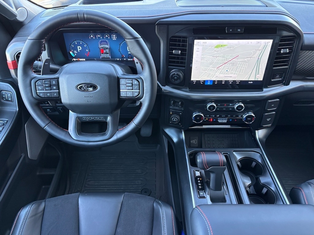 F-150 4WD, 14 Speakers, 17" Cast Aluminum Wheels, 4-Wheel Disc Brakes, ABS brakes, Adjustable pedals, Air Conditioning, Alloy wheels, AM/FM radio: SiriusXM with 360L, Auto High-beam Headlights, Auto tilt-away steering wheel, Auto-dimming door mirrors, Auto-dimming Rear-View mirror, Automatic temperature control, Brake assist, Bumpers: body-color, Carbon Fiber Interior Appliques, Compass, Cruise Control, Delay-off headlights, Driver door bin, Driver vanity mirror, Dual front impact airbags, Dual front side impact airbags, Dual Valve Shocks, Electronic Locking w/4.10 Axle Ratio, Electronic Stability Control, Emergency communication system: SYNC 4 911 Assist, Equipment Group 802A Raptor 37, Front anti-roll bar, Front Bucket Seats, Front Center Armrest, Front dual zone A/C, Front fog lights, Front License Plate Bracket, Front reading lights, Front wheel independent suspension, Fully automatic headlights, Garage door transmitter, Heads-Up Display, Heated and Cooled Seats, Heated door mirrors, Heated rear seats, Heated steering wheel, Illuminated entry, Internet access capable: FordPass Connect 5G, Lane Departure Warning System, Leather steering wheel, Leather Trimmed Seats, Low tire pressure warning, Memory seat, Modular Front Bumper, Navigation system: Connected Navigation, Occupant sensing airbag, Outside temperature display, Overhead airbag, Overhead console, Panic alarm, Passenger door bin, Passenger vanity mirror, Pedal memory, Power door mirrors, Power driver seat, Power passenger seat, Power steering, Power windows, Radio data system, Radio: B&O Unleashed Sound System by Bang & Olufsen, Rain sensing wipers, Rear reading lights, Rear step bumper, Rear window defroster, RECARO Alcantara Suede Front Seats, Remote keyless entry, Security system, Speed-sensing steering, Split folding rear seat, Steering wheel memory, Steering wheel mounted audio controls, SYNC 4 w/Enhanced Voice Recognition, Tachometer, Telescoping steering wheel, Tilt steering wheel, Traction control, Trip computer, Turn signal indicator mirrors, Twin Panel Moonroof, Variably intermittent wipers, Ventilated front seats, Wheels: Raptor 37 Unique 17" Cast Aluminum, (Must finance with Ford Motor Credit to receive online pricing - see dealer for details.) Proudly, 4WD. Raptor