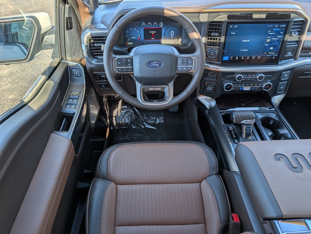 Customer must finance with dealer at standard rate for online ad price- Pricing also includes $1,000 trade in assistance(customer must trade a vehicle to qualify) 3.5L PowerBoost Full-Hybrid V6, 4WD, 14 Speakers, 4-Wheel Disc Brakes, 4x4 FX4 Off-Road Bodyside Decal, ABS brakes, Adjustable pedals, Air Conditioning, Alloy wheels, AM/FM radio: SiriusXM with 360L, Auto High-beam Headlights, Auto tilt-away steering wheel, Auto-dimming door mirrors, Auto-dimming Rear-View mirror, Automatic temperature control, Brake assist, Chrome wheels, Compass, Cruise Control, Delay-off headlights, Driver door bin, Driver vanity mirror, Dual front impact airbags, Dual front side impact airbags, Electronic Stability Control, Emergency communication system: SYNC 4 911 Assist, Equipment Group 601A High, Front anti-roll bar, Front Bucket Seats, Front Center Armrest, Front dual zone A/C, Front fog lights, Front License Plate Bracket, Front reading lights, Front wheel independent suspension, Fully automatic headlights, FX4 Off-Road Package, Garage door transmitter, Genuine wood dashboard insert, Heads-Up Display, Heated and Cooled Seats, Heated door mirrors, Heated rear seats, Heated steering wheel, Hill Descent Control, Illuminated entry, King Ranch Multicontour Leather Bucket Seats, Leather steering wheel, Low tire pressure warning, Memory seat, Monotube Rear Shocks, Navigation system: Connected Navigation, Occupant sensing airbag, Off-Road Tuned Front Shock Absorbers, Outside temperature display, Overhead airbag, Overhead console, Panic alarm, Passenger door bin, Passenger vanity mirror, Pedal memory, Power door mirrors, Power driver seat, Power moonroof, Power passenger seat, Power steering, Power windows, Radio data system, Radio: B&O Unleashed Sound System by Bang & Olufsen, Rain sensing wipers, Rear reading lights, Rear seat center armrest, Rear step bumper, Rear window defroster, Remote keyless entry, Rock Crawl Mode, Security system, Split folding rear seat, Steering wheel memory, Steering wheel mounted audio controls, SYNC 4 w/Enhanced Voice Recognition, Tachometer, Telescoping steering wheel, Tilt steering wheel, Traction control, Trip computer, Turn signal indicator mirrors, Variably intermittent wipers, Ventilated front seats, Voltmeter, Wheels: 20" Chrome-Like PVD, (Must finance with Ford Motor Credit to receive online pricing - see dealer for details.) Proudly, 3.5L PowerBoost Full-Hybrid V6, 4WD.