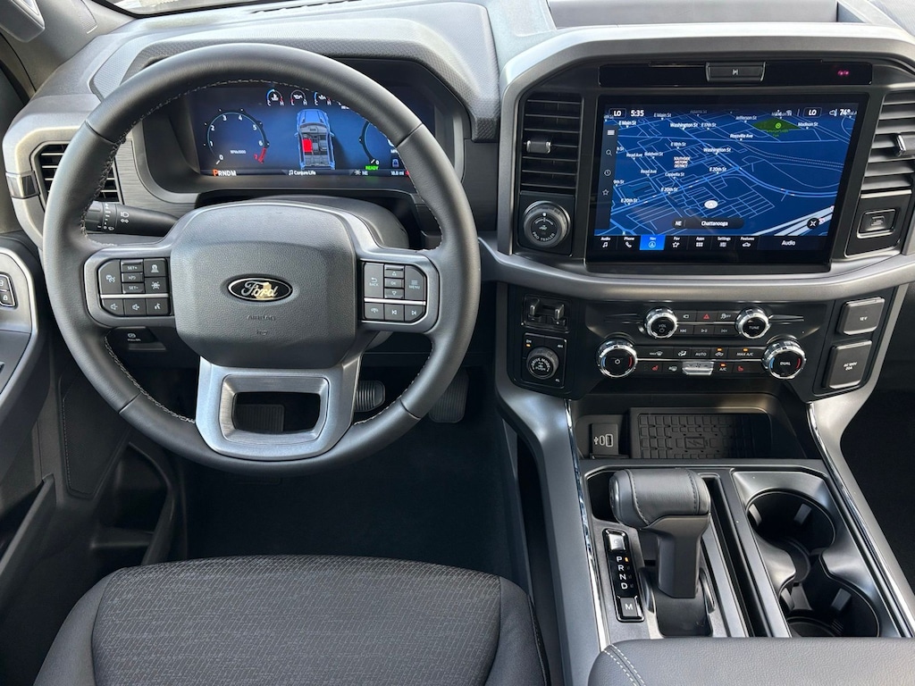 F-150 3.5L PowerBoost Full-Hybrid V6, 4WD, 360 Degree Camera, 4-Wheel Disc Brakes, 400W Cab & Bed Outlets, 6 Speakers, 6" Angular Bright Anodized Step Bar, ABS brakes, Adaptive Cruise Control w/Stop & Go, Air Conditioning, Alloy wheels, AM/FM radio: SiriusXM with 360L, Auto High-beam Headlights, Auto-Dimming Rear-View Mirror, Black Painted Grille w/Chrome Center Bar, BlueCruise (Equipment + 1-Year Plan), Brake assist, Bumpers: chrome, Chrome Door & Tailgate Handles, Chrome Single-Tip Exhaust, Chrome wheels, Cloth 40/20/40 Front Seat, Cloth 40/Console/40 Front Seats, Compass, Connected Navigation, Console Worksurface, Cruise Control, Delay-off headlights, Driver door bin, Driver State Detection, Driver vanity mirror, Dual front impact airbags, Dual front side impact airbags, Dual-Zone Electronic Automatic Temperature Control, Electronic Stability Control, Emergency communication system: SYNC 4 911 Assist, Equipment Group 302A Mid, Evasive Steering Assist, Ford Co-Pilot360 Assist 2.0, Front anti-roll bar, Front Center Armrest, Front fog lights, Front Parking Sensors, Front reading lights, Front wheel independent suspension, Fully automatic headlights, Heated door mirrors, Heated Front Seats, Illuminated entry, Intelligent Access w/Push Button Start, Internet access capable: FordPass Connect 5G, Low tire pressure warning, Mobile Office Package, Occupant sensing airbag, Outside temperature display, Overhead airbag, Overhead console, Panic alarm, Partitioned Lockable Rear Storage, Passenger door bin, Passenger vanity mirror, Power door mirrors, Power Glass Heated Sideview Mirrors, Power steering, Power windows, Power-Sliding Rear Window, Pro Power Onboard - 7.2KW, Radio data system, Radio: AM/FM Stereo w/SiriusXM 360L, Rear Parking Sensors, Rear reading lights, Rear step bumper, Rear window defroster, Remote keyless entry, Remote Start System w/Remote Tailgate Release, Security system, Split folding rear seat, Steering wheel mounted audio controls, SYNC 4 w/Enhanced Voice Recognition, Tachometer, Telescoping steering wheel, Tilt steering wheel, Tough Bed Spray-In Bedliner, Tow/Haul Package, Towing Technology, Traction control, Trip computer, Variably intermittent wipers, Voltmeter, Wheels: 18" Chrome-Like PVD, Wrapped Steering Wheel, (Must finance with Ford Motor Credit to receive online pricing - see dealer for details.) Proudly, 3.5L PowerBoost Full-Hybrid V6, 4WD. XLT