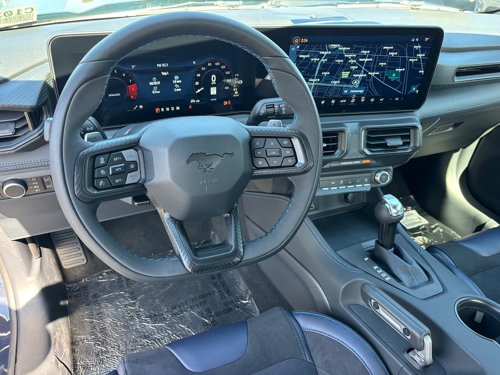 Mustang 12 Speakers, 4-Wheel Disc Brakes, ABS brakes, Active Anti-Theft System, Adaptive suspension, Air Conditioning, Alloy wheels, Aluminum Foot Pedals, AM/FM radio: SiriusXM with 360L, AM/FM Stereo, Approach Detection, Auto High-beam Headlights, Auto-dimming Rear-View mirror, Automatic temperature control, B&O Sound System by Bang & Olufsen, Brake assist, Bumpers: body-color, Cloth/Vinyl Climate-Controlled Bucket Seats, Cloth/Vinyl Heated Bucket Seats, Compass, Cruise Control, Dark Horse Appearance Package, Delay-off headlights, Driver door bin, Driver Seat & Mirrors Memory, Driver vanity mirror, Dual front impact airbags, Dual front side impact airbags, Electronic Stability Control, Emergency communication system: 911 Assist, Equipment Group 700A Deluxe Package, Four wheel independent suspension, Front anti-roll bar, Front Bucket Seats, Front Center Armrest, Front dual zone A/C, Front reading lights, Fully automatic headlights, HD Radio, Heated and Cooled Seats, Heated steering wheel, Illuminated entry, Knee airbag, Locking Center Console, Low tire pressure warning, Navigation system: Connected Navigation, Notorious Blue Painted Brake Calipers, Occupant sensing airbag, Outside temperature display, Overhead airbag, Overhead console, Painted Black Roof, Panic alarm, Passenger door bin, Passenger vanity mirror, Power door mirrors, Power driver seat, Power passenger seat, Power steering, Power windows, Radio data system, Rain sensing wipers, Rear anti-roll bar, Rear Parking Sensors, Rear window defroster, Rearview Camera, RECARO Micro-Suede/Vinyl Bucket Seats, RECARO Sport Seats, Remote keyless entry, Security Package, SiriusXM w/360L, Speed-sensing steering, Speed-Sensitive Wipers, Split folding rear seat, Spoiler, Sport steering wheel, Steering wheel mounted audio controls, SYNC 4, Tachometer, Telescoping steering wheel, Tilt steering wheel, Traction control, Trip computer, Unique Hood Graphic, Universal Garage Door Opener (UGDO), Variably intermittent wipers, Voltmeter, Wheel Locking Kit, Wheels: 19" x 9.5" Fr & 19" x 10" Rr Aluminum, (Must finance with Ford Motor Credit to receive online pricing - see dealer for details.) Proudly. Dark Horse