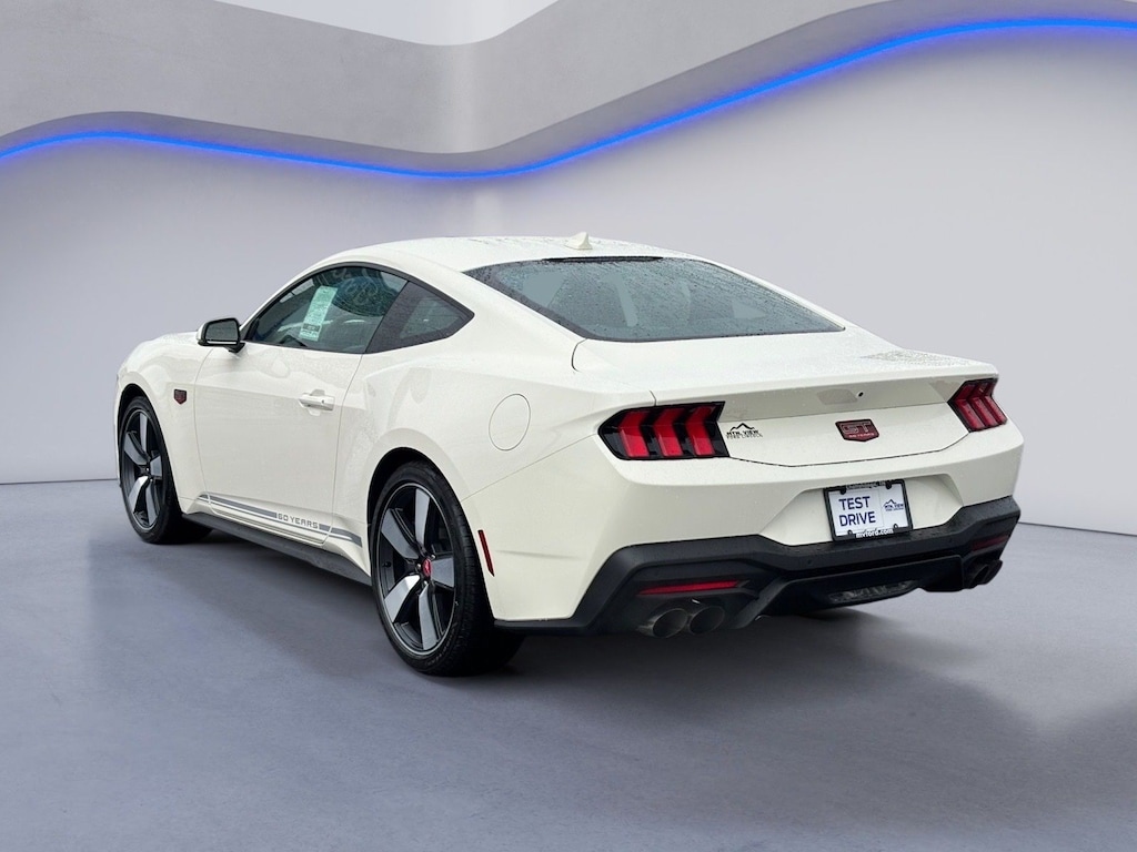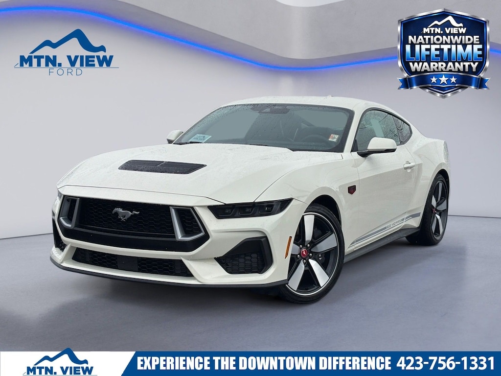 Mustang 3.55 Limited Slip Rear Axle, 4-Wheel Disc Brakes, 60th Anniversary Package, ABS brakes, Active Valve Performance Exhaust, Air Conditioning, Alloy wheels, AM/FM Stereo, Anniversary Special Edition Badge, Auto High-beam Headlights, Automatic temperature control, B&O Sound System by Bang & Olufsen w/12 Speakers, Brake assist, Brembo Brake System, Brembo Brake System w/Performance Linings, Bumpers: body-color, Compass, Cruise Control, Delay-off headlights, Driver door bin, Driver vanity mirror, Dual front impact airbags, Dual front side impact airbags, Electronic Stability Control, Emergency communication system: 911 Assist, Equipment Group 401A High Package, Four wheel independent suspension, Front anti-roll bar, Front Bucket Seats, Front Center Armrest, Front dual zone A/C, Front reading lights, Fully automatic headlights, Illuminated Door-Sill Scuff Plates, Illuminated entry, Internet access capable: FordPass Connect, Knee airbag, Leather Shift Knob, Leather steering wheel, Low tire pressure warning, Occupant sensing airbag, Outside temperature display, Overhead airbag, Overhead console, Painted High Gloss Black Honeycomb Grille, Panic alarm, Passenger door bin, Passenger vanity mirror, Power door mirrors, Power steering, Power windows, Radio data system, Rain sensing wipers, Rear anti-roll bar, Rear Parking Sensors, Rear window defroster, Rearview Camera, Remote keyless entry, Speed-sensing steering, Speed-Sensitive Wipers, Split folding rear seat, Spoiler, Sport steering wheel, Steering wheel mounted audio controls, SYNC 4, Tachometer, Telescoping steering wheel, Tilt steering wheel, Traction control, Trip computer, Variably intermittent wipers, Voltmeter, (Must finance with Ford Motor Credit to receive online pricing - see dealer for details.) Proudly. GT Premium