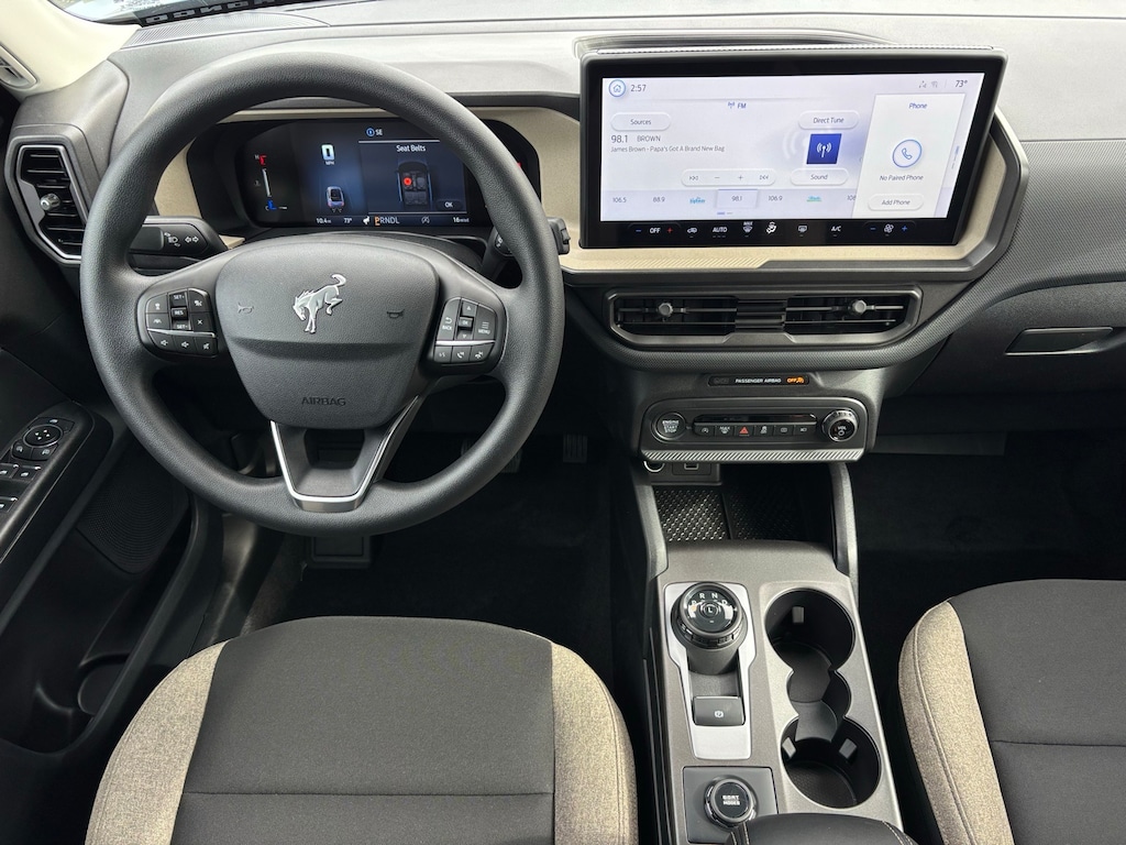 Bronco Sport 4-Wheel Disc Brakes, 6 Speakers, ABS brakes, Air Conditioning, Alloy wheels, AM/FM radio: SiriusXM with 360L, AM/FM Stereo, Apple CarPlay/Android Auto, Auto High-beam Headlights, Automatic temperature control, Brake assist, Cloth with Easy-to-Clean Front Bucket Seats, Compass, Cruise Control, Delay-off headlights, Driver door bin, Driver vanity mirror, Dual front impact airbags, Dual front side impact airbags, Electronic Stability Control, Emergency communication system: SYNC 4 911 Assist, Ford Connectivity Package (1-Year Included), Four wheel independent suspension, Front anti-roll bar, Front Bucket Seats, Front Center Armrest, Front reading lights, Fully automatic headlights, Heated door mirrors, Illuminated entry, Internet access capable: 5G Modem - Ford Connectivity Package, Knee airbag, Low tire pressure warning, Occupant sensing airbag, Outside temperature display, Overhead airbag, Overhead console, Panic alarm, Passenger door bin, Passenger vanity mirror, Power door mirrors, Power steering, Power windows, Radio data system, Rear anti-roll bar, Rear Parking Sensors, Rear reading lights, Rear seat center armrest, Rear window defroster, Rear window wiper, Rearview Camera, Remote keyless entry, Security system, SiriusXM with 360L, Speed-sensing steering, Speed-Sensitive Wipers, Split folding rear seat, Steering wheel mounted audio controls, SYNC 4 with Enhanced Voice Recognition, Tachometer, Telescoping steering wheel, Tilt steering wheel, Traction control, Trip computer, Variably intermittent wipers, Wheels: 17" Carbonized Gray Painted Aluminum, (Must finance with Ford Motor Credit to receive online pricing - see dealer for details.) Proudly. Big Bend