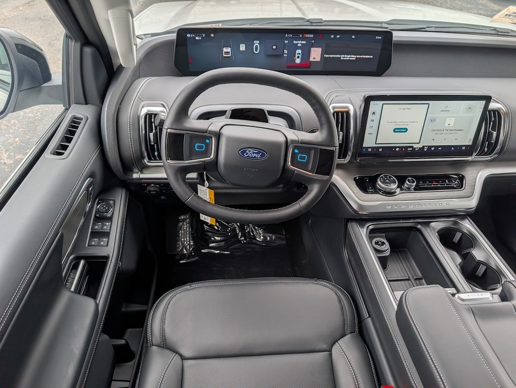 Expedition 4WD, 10 Speakers, 2nd Row Power-Folding Captain's Chairs, 3.73 Axle Ratio, 3rd row seats: split-bench, 4-Wheel Disc Brakes, ABS brakes, Air Conditioning, Alloy wheels, AM/FM radio: SiriusXM with 360L, Apple CarPlay/Android Auto, Auto High-beam Headlights, Auto-dimming door mirrors, Auto-dimming Rear-View mirror, Automatic temperature control, Black Onyx Painted Power Deployable Running Boards, BlueCruise Equipped (90-Day Trial), Brake assist, Bumpers: body-color, Compass, Cruise Control, Delay-off headlights, Driver door bin, Driver vanity mirror, Driver's Package, Dual front impact airbags, Dual front side impact airbags, Electronic Stability Control, Emergency communication system: 911 Assist, Equipment Group 600A Standard Package, Ford Connectivity Package (1-Year Included), Ford Digital Experience, Four wheel independent suspension, Front anti-roll bar, Front Bucket Seats, Front Center Armrest, Front dual zone A/C, Front reading lights, Fully automatic headlights, Garage door transmitter, Genuine wood dashboard insert, Genuine wood door panel insert, Heated and Cooled Seats, Heated and Ventilated Leather Front Captain's Chairs, Heated door mirrors, Heated rear seats, Heated steering wheel, Illuminated entry, Intersection Assist, Leather steering wheel, Low tire pressure warning, Memory seat, Navigation System, Occupant sensing airbag, Outside temperature display, Overhead airbag, Overhead console, Panic alarm, Passenger door bin, Passenger vanity mirror, Power door mirrors, Power driver seat, Power moonroof: Vista Roof, Power passenger seat, Power steering, Power Tilt/Telescopic Steering Wheel with Memory, Power windows, Radio data system, Radio: B&O Play Unleashed, Radio: B&O Sound System by Bang and Olufsen, Rain sensing wipers, Rear air conditioning, Rear anti-roll bar, Rear reading lights, Rear window defroster, Rear window wiper, Rearview Camera, Reclining 3rd row seat, Remote keyless entry, Security system, SiriusXM with 360L, Speed-sensing steering, Speed-Sensitive Wipers, Split folding rear seat, Spoiler, Steering wheel memory, Steering wheel mounted audio controls, Tachometer, Telescoping steering wheel, Tilt steering wheel, Traction control, Trip computer, Turn signal indicator mirrors, Variably intermittent wipers, Ventilated front seats, Voltmeter, Wheels: 20" x 8.5" Ebony Bright Machined Aluminum, Wheels: 22" x 9.0" Ebony Bright Machined Face Aluminum, (Must finance with Ford Motor Credit to receive online pricing - see dealer for details.) Proudly, 4WD. Platinum
