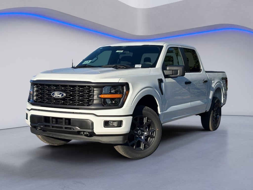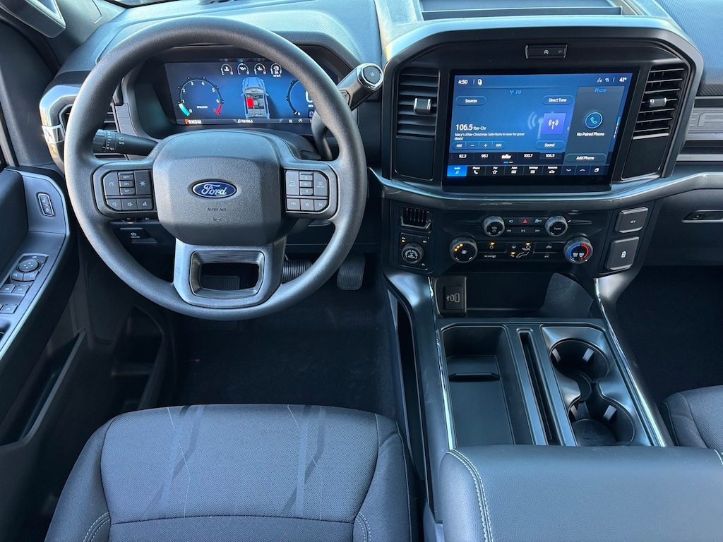 F-150 4WD, 12" Cluster Display, 4-Wheel Disc Brakes, 6 Speakers, ABS brakes, Air Conditioning, Alloy wheels, AM/FM radio: SiriusXM with 360L, Auto High-beam Headlights, Brake assist, Bumpers: body-color, Compass, Cruise Control, Delay-off headlights, Driver door bin, Dual front impact airbags, Dual front side impact airbags, Electronic Stability Control, Emergency communication system: SYNC 4 911 Assist, Equipment Group 200A Mid, Ford Connectivity Package (1-Year Included), Front anti-roll bar, Front Bucket Seats, Front Center Armrest, Front License Plate Bracket, Front reading lights, Front wheel independent suspension, Fully automatic headlights, GVWR: 6,650 lbs Payload Package, Heated door mirrors, Illuminated entry, Internet access capable: 5G Modem - Ford Connectivity Package, LED Fog Lamps with LED Cornering Lamp, Low tire pressure warning, Occupant sensing airbag, Outside temperature display, Overhead airbag, Overhead console, Panic alarm, Passenger door bin, Passenger vanity mirror, Power door mirrors, Power steering, Power windows, Radio data system, Radio: AM/FM Stereo with SiriusXM 360L, Rear Parking Sensors, Rear step bumper, Rear window defroster, Remote keyless entry, Security system, Split folding rear seat, Steering wheel mounted audio controls, SYNC 4 with Enhanced Voice Recognition, Tachometer, Telescoping steering wheel, Tilt steering wheel, Traction control, Trip computer, Unique Sport Cloth 40/Console/40 Front-Seats, Variably intermittent wipers, Wheels: 18" Gloss Black, Wheels: 20" Dark Gray Aluminum, (Must finance with Ford Motor Credit to receive online pricing - see dealer for details.) Proudly, 4WD. STX