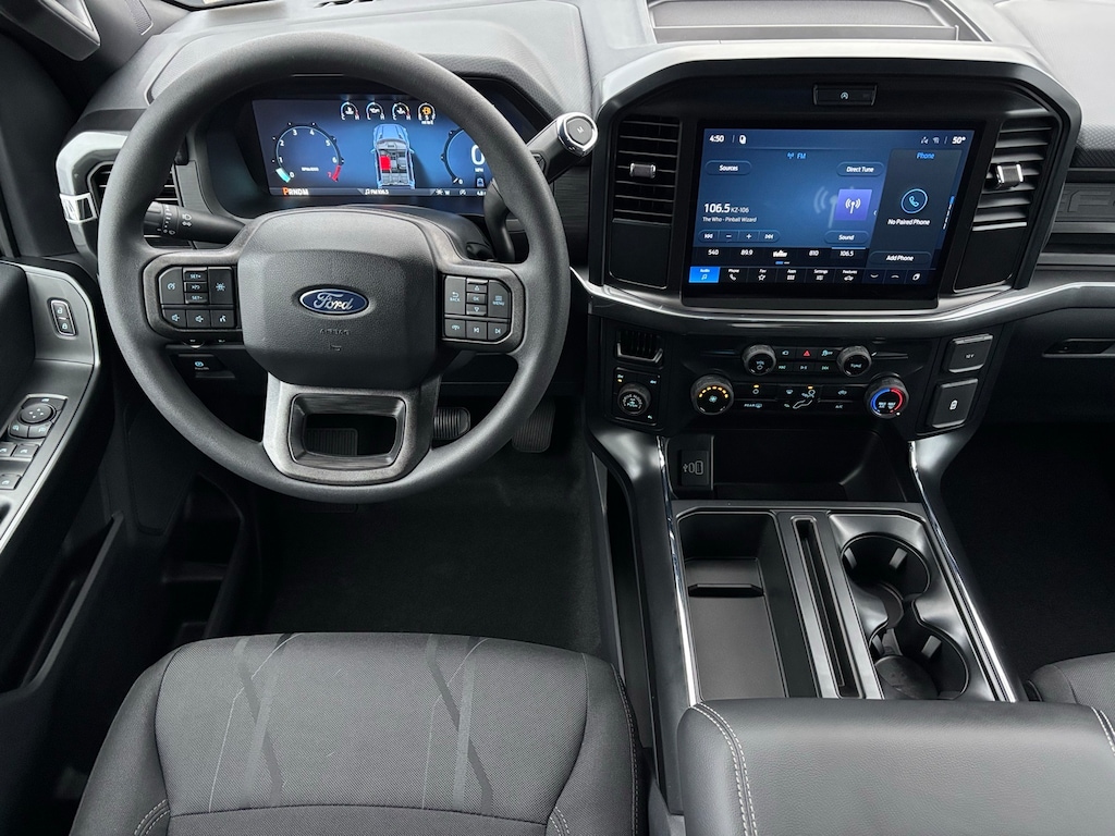 F-150 4WD, 12" Cluster Display, 4-Wheel Disc Brakes, 6 Speakers, ABS brakes, Air Conditioning, Alloy wheels, AM/FM radio: SiriusXM with 360L, Auto High-beam Headlights, Brake assist, Bumpers: body-color, Compass, Cruise Control, Delay-off headlights, Driver door bin, Dual front impact airbags, Dual front side impact airbags, Electronic Stability Control, Emergency communication system: SYNC 4 911 Assist, Equipment Group 200A Mid, Ford Connectivity Package (1-Year Included), Front anti-roll bar, Front Bucket Seats, Front Center Armrest, Front License Plate Bracket, Front reading lights, Front wheel independent suspension, Fully automatic headlights, GVWR: 6,650 lbs Payload Package, Heated door mirrors, Illuminated entry, Internet access capable: 5G Modem - Ford Connectivity Package, LED Fog Lamps with LED Cornering Lamp, Low tire pressure warning, Occupant sensing airbag, Outside temperature display, Overhead airbag, Overhead console, Panic alarm, Passenger door bin, Passenger vanity mirror, Power door mirrors, Power steering, Power windows, Radio data system, Radio: AM/FM Stereo with SiriusXM 360L, Rear Parking Sensors, Rear step bumper, Rear window defroster, Remote keyless entry, Security system, Split folding rear seat, Steering wheel mounted audio controls, SYNC 4 with Enhanced Voice Recognition, Tachometer, Telescoping steering wheel, Tilt steering wheel, Traction control, Trip computer, Unique Sport Cloth 40/Console/40 Front-Seats, Variably intermittent wipers, Wheels: 18" Gloss Black, Wheels: 20" Dark Gray Aluminum, (Must finance with Ford Motor Credit to receive online pricing - see dealer for details.) Proudly, 4WD. STX