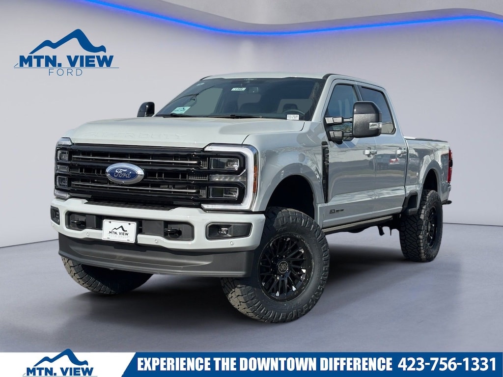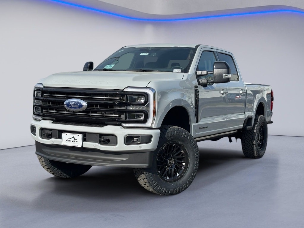 F-250SD 4WD, 4-Wheel Disc Brakes, 410 Amp Dual Alternators, ABS brakes, Adjustable pedals, Air Conditioning, All-Weather Floor Mats, Alloy wheels, AM/FM radio: SiriusXM with 360L, Auto High-beam Headlights, Auto-dimming Rear-View mirror, Automatic temperature control, Brake assist, Compass, Cruise Control, Delay-off headlights, Driver door bin, Driver vanity mirror, Dual front impact airbags, Dual front side impact airbags, Electronic Stability Control, Emergency communication system: SYNC 4 911 Assist, Engine Block Heater, Flow-Through Console, Ford Connectivity Package (1-Year Included), Front anti-roll bar, Front Bucket Seats, Front Center Armrest, Front dual zone A/C, Front fog lights, Front License Plate Bracket, Front reading lights, Fully automatic headlights, FX4 Off-Road Package, Garage door transmitter, GVWR: F-250 >10K Package, Heated and Cooled Seats, Heated door mirrors, Heated rear seats, Heated steering wheel, Hill Descent Control, Illuminated entry, Internet access capable: 5G Modem - Ford Connectivity Package, Low tire pressure warning, Memory seat, Navigation system: Connected Navigation, Off-Road Specifically Tuned Shock Absorbers, Outside temperature display, Overhead airbag, Overhead console, Panic alarm, Passenger door bin, Passenger vanity mirror, Pedal memory, Power door mirrors, Power driver seat, Power passenger seat, Power steering, Power windows, Pro Power Onboard - 2kW, Radio: B&O Unleashed Sound System by Bang & Olufsen, Rain sensing wipers, Rear reading lights, Rear seat center armrest, Rear step bumper, Rear window defroster, Remote keyless entry, Security system, SiriusXM with 360L, Split folding rear seat, Steering wheel mounted audio controls, SYNC 4 with Enhanced Voice Recognition, Tachometer, Telescoping steering wheel, Tilt steering wheel, Traction control, Trip computer, Turn signal indicator mirrors, Twin Panel Power Moonroof, Unique FX4 Off-Road Box Decal, Upfitter Switches (6), Variably intermittent wipers, Ventilated front seats, (Must finance with Ford Motor Credit to receive online pricing - see dealer for details.) Proudly, 4WD. Platinum