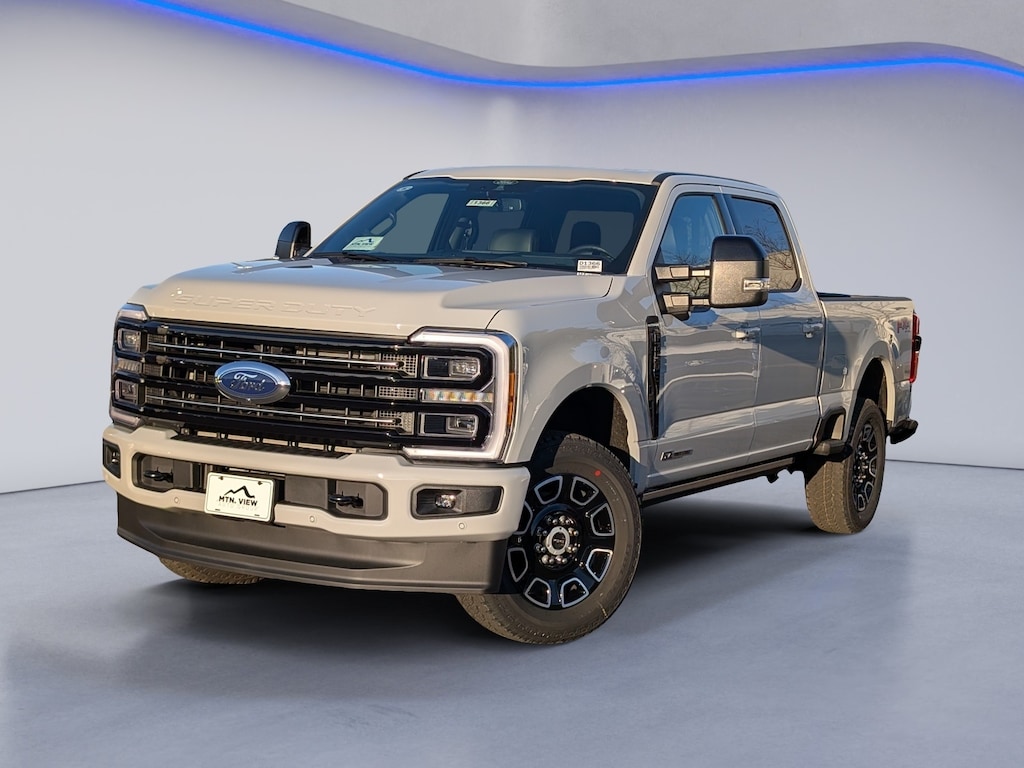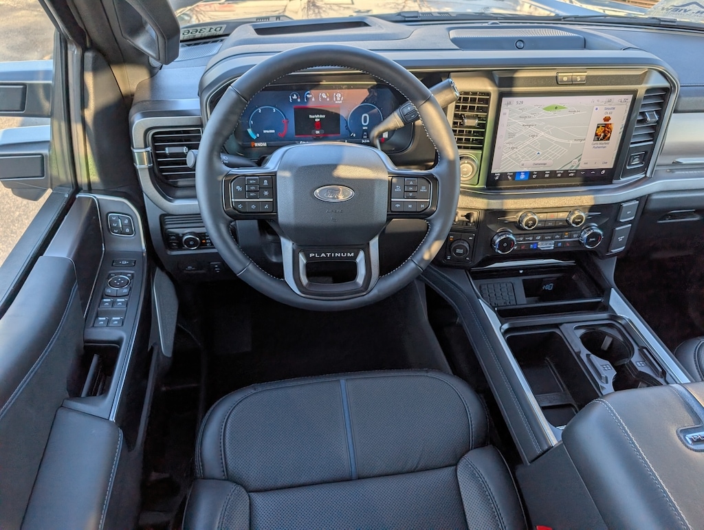 F-250SD 4WD, 4-Wheel Disc Brakes, 410 Amp Dual Alternators, ABS brakes, Adjustable pedals, Air Conditioning, All-Weather Floor Mats, Alloy wheels, AM/FM radio: SiriusXM with 360L, Auto High-beam Headlights, Auto-dimming Rear-View mirror, Automatic temperature control, Brake assist, Compass, Cruise Control, Delay-off headlights, Driver door bin, Driver vanity mirror, Dual front impact airbags, Dual front side impact airbags, Electronic Stability Control, Emergency communication system: SYNC 4 911 Assist, Engine Block Heater, Flow-Through Console, Ford Connectivity Package (1-Year Included), Front anti-roll bar, Front Bucket Seats, Front Center Armrest, Front dual zone A/C, Front fog lights, Front License Plate Bracket, Front reading lights, Fully automatic headlights, FX4 Off-Road Package, Garage door transmitter, GVWR: F-250 >10K Package, Heated and Cooled Seats, Heated door mirrors, Heated rear seats, Heated steering wheel, Hill Descent Control, Illuminated entry, Internet access capable: 5G Modem - Ford Connectivity Package, Low tire pressure warning, Memory seat, Navigation system: Connected Navigation, Off-Road Specifically Tuned Shock Absorbers, Outside temperature display, Overhead airbag, Overhead console, Panic alarm, Passenger door bin, Passenger vanity mirror, Pedal memory, Power door mirrors, Power driver seat, Power passenger seat, Power steering, Power windows, Pro Power Onboard - 2kW, Radio: B&O Unleashed Sound System by Bang & Olufsen, Rain sensing wipers, Rear reading lights, Rear seat center armrest, Rear step bumper, Rear window defroster, Remote keyless entry, Security system, SiriusXM with 360L, Split folding rear seat, Steering wheel mounted audio controls, SYNC 4 with Enhanced Voice Recognition, Tachometer, Telescoping steering wheel, Tilt steering wheel, Traction control, Trip computer, Turn signal indicator mirrors, Twin Panel Power Moonroof, Unique FX4 Off-Road Box Decal, Upfitter Switches (6), Variably intermittent wipers, Ventilated front seats, (Must finance with Ford Motor Credit to receive online pricing - see dealer for details.) Proudly, 4WD. Platinum