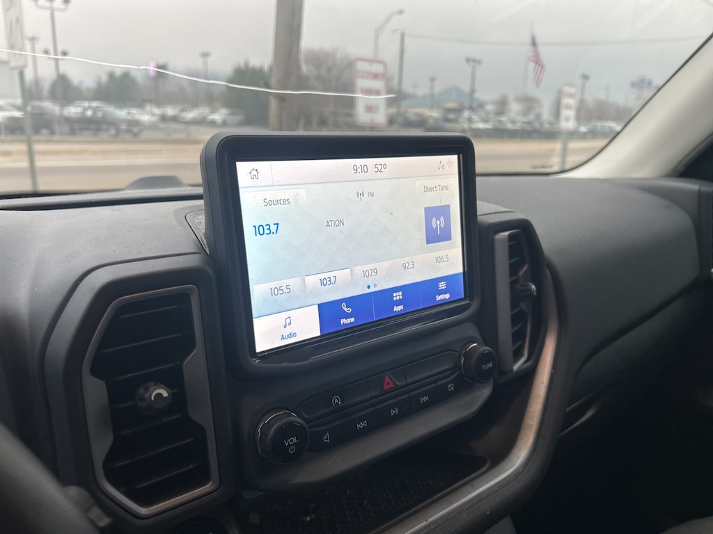 2021 Ford Bronco Sport Big Bend Bronco Sport Big Bend, 4D Sport Utility, 1.5L EcoBoost, 8-Speed Automatic, 4WD, Area 51, Medium Dark Slate Cloth, Equipment Group 200A, 3.80 Axle Ratio, 4-Wheel Disc Brakes, 6 Speakers, ABS brakes, Air Conditioning, Alloy wheels, AM/FM radio: SiriusXM, AM/FM Stereo, Auto High-beam Headlights, Automatic temperature control, Brake assist, Compass, Cruise Control, Delay-off headlights, Driver door bin, Driver vanity mirror, Dual front impact airbags, Dual front side impact airbags, Electronic Stability Control, Emergency communication system: SYNC 3 911 Assist, Four wheel independent suspension, Front anti-roll bar, Front Bucket Seats, Front Center Armrest, Front fog lights, Front reading lights, Fully automatic headlights, Heated door mirrors, Illuminated entry, Knee airbag, Low tire pressure warning, Occupant sensing airbag, Outside temperature display, Overhead airbag, Overhead console, Panic alarm, Passenger door bin, Passenger vanity mirror, Power door mirrors, Power steering, Power windows, Radio data system, Rear anti-roll bar, Rear reading lights, Rear seat center armrest, Rear window defroster, Rear window wiper, Rearview Camera, Remote keyless entry, Roof rack: rails only, Security system, SiriusXM Radio, Speed-sensing steering, Speed-Sensitive Wipers, Split folding rear seat, Steering wheel mounted audio controls, SYNC 3 Communications & Entertainment System, SYNC 3/Apple CarPlay/Android Auto, Tachometer, Telescoping steering wheel, Tilt steering wheel, Traction control, Trip computer, Unique Cloth Front Bucket Seats, Variably intermittent wipers, Wheels: 17 Carbonized Gray-Painted Aluminum, (Must finance with Ford Motor Credit to receive online pricing - see dealer for details.) Proudly, Bronco Sport Big Bend, 4D Sport Utility, 1.5L EcoBoost, 8-Speed Automatic, 4WD, Area 51, Medium Dark Slate Cloth, Equipment Group 200A. Area 51 Awards: * JD Power Automotive Performance, Execution and Layout (APEAL) Study 8-Speed Automatic CARFAX One-Owner.