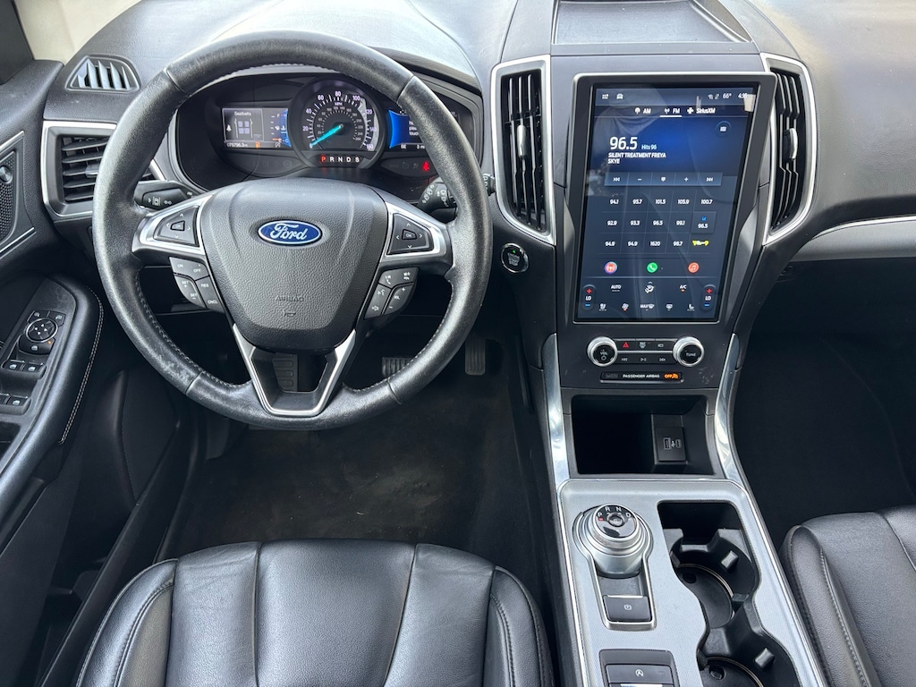 2022 Ford Edge Titanium Edge Titanium, 4D Sport Utility, EcoBoost 2.0L I4 GTDi DOHC Turbocharged VCT, 8-Speed Automatic, AWD, Blue Metallic, Ebony Leather, 12 Speakers, 3.80 Axle Ratio, 4-Wheel Disc Brakes, ABS brakes, Air Conditioning, Alloy wheels, AM/FM radio: SiriusXM with 360L, Auto High-beam Headlights, Auto-dimming Rear-View mirror, Automatic temperature control, Brake assist, Bumpers: body-color, Compass, Cruise Control, Delay-off headlights, Driver door bin, Driver vanity mirror, Dual front impact airbags, Dual front side impact airbags, Electronic Stability Control, Emergency communication system: SYNC 4 911 Assist, Engine Block Heater, Equipment Group 300A, FordPass Connect, Four wheel independent suspension, Front anti-roll bar, Front Bucket Seats, Front Center Armrest w/Storage, Front dual zone A/C, Front fog lights, Front reading lights, Fully automatic headlights, Garage door transmitter, Heated and Cooled Seats, Heated door mirrors, Heated steering wheel, Illuminated entry, Knee airbag, Leather-Trimmed Heated Sport Bucket Seats, Low tire pressure warning, Memory seat, Occupant sensing airbag, Outside temperature display, Overhead airbag, Overhead console, Panic alarm, Passenger door bin, Passenger vanity mirror, Power door mirrors, Power driver seat, Power Liftgate, Power passenger seat, Power steering, Power windows, Radio: B&O Sound System by Bang & Olufsen, Rain sensing wipers, Rear anti-roll bar, Rear reading lights, Rear seat center armrest, Rear window defroster, Rear window wiper, Remote keyless entry, Security system, SiriusXM w/360L, Speed-Sensitive Wipers, Split folding rear seat, Spoiler, Steering wheel mounted audio controls, SYNC 4A w/Enhanced Voice Recognition, Tachometer, Telescoping steering wheel, Tilt steering wheel, Traction control, Trip computer, Turn signal indicator mirrors, Variably intermittent wipers, Wheels: 19 Luster Nickel-Painted Aluminum, (Must finance with Ford Motor Credit to receive online pricing - see dealer for details.) Proudly, Edge Titanium, 4D Sport Utility, EcoBoost 2.0L I4 GTDi DOHC Turbocharged VCT, 8-Speed Automatic, AWD, Blue Metallic, Ebony Leather. Blue Metallic 8-Speed Automatic