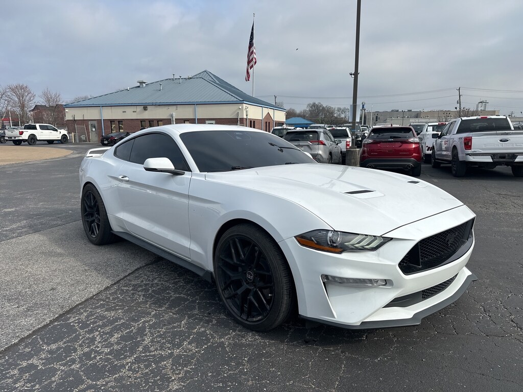 2022 Ford Mustang GT Premium 4-Wheel Disc Brakes, ABS brakes, Active Valve Performance Exhaust, Air Conditioning, Alloy wheels, AM/FM Stereo, Auto High-beam Headlights, Auto-dimming Rear-View mirror, Brake assist, Bumpers: body-color, Compass, Cruise Control, Delay-off headlights, Driver door bin, Driver vanity mirror, Dual front impact airbags, Dual front side impact airbags, Electronic Stability Control, Emergency communication system: 911 Assist, Equipment Group 401A, Four wheel independent suspension, Front anti-roll bar, Front Bucket Seats, Front Center Armrest, Front fog lights, Front reading lights, Fully automatic headlights, Illuminated entry, Knee airbag, Leather Shift Knob, Leather-Trimmed Bucket Seats w/Color Accents, Low tire pressure warning, Occupant sensing airbag, Outside temperature display, Overhead airbag, Overhead console, Panic alarm, Passenger door bin, Passenger vanity mirror, Power door mirrors, Power driver seat, Power passenger seat, Power steering, Power windows, Radio data system, Rain sensing wipers, Rear anti-roll bar, Rear Parking Sensors, Rear window defroster, Rearview Camera, Remote keyless entry, Security system, Speed-sensing steering, Speed-Sensitive Wipers, Split folding rear seat, Spoiler, Steering wheel mounted audio controls, Tachometer, Telescoping steering wheel, Tilt steering wheel, Traction control, Trip computer, Variably intermittent wipers, Voltmeter, Wheels: 18 x 8 Machined-Face Aluminum, Wheels: 20 x 9 Premium-Painted Aluminum, (Must finance with Ford Motor Credit to receive online pricing - see dealer for details.) Proudly. Oxford White 6-Speed Manual