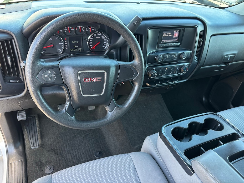 2015 GMC Sierra 1500 Base Double Cab, EcoTec3 5.3L V8, 6-Speed Automatic Electronic with Overdrive, RWD, Quicksilver Metallic, Jet Black/Dark Ash Cloth, 110-Volt AC Power Outlet, 150 Amp Alternator, 3.5 Diagonal Monochromatic Display DIC, 4-Wheel Disc Brakes, 40/20/40 Front Split Bench Seat, 6 Speakers, ABS brakes, Air Conditioning, AM/FM radio, Auxiliary External Transmission Oil Cooler, Black Manual Outside Mirrors, Black Power-Adjustable Heated Outside Mirrors, Brake assist, Bumpers: chrome, Chrome Grille Surround, Cloth Seat Trim, Color-Keyed Carpeting w/Rubberized Vinyl Floor Mats, Cruise Control, Deep-Tinted Glass, Delay-off headlights, Driver door bin, Dual front impact airbags, Dual front side impact airbags, Electric Rear-Window Defogger, Electronic Stability Control, Front anti-roll bar, Front Center Armrest w/Storage, Front License Plate Kit, Front reading lights, Front wheel independent suspension, Fully automatic headlights, Graphite-Colored Rubberized-Vinyl Floor Covering, Heavy Duty Suspension, Heavy-Duty Rear Locking Differential, Integrated Trailer Brake Controller, LED Cargo Box Lighting, Low tire pressure warning, Manual Tilt Wheel Steering Column, Occupant sensing airbag, OnStar 6 Months Directions & Connections Plan, OnStar w/4G LTE, Overhead airbag, Overhead console, Passenger door bin, Passenger vanity mirror, Power steering, Power windows, Power Windows w/Driver Express Up & Down, Preferred Equipment Group 1SA, Radio data system, Radio: AM/FM Stereo w/4.2 Diagonal Color Display, Radio: AM/FM Stereo w/IntelliLink, Rear reading lights, Rear seat center armrest, Rear step bumper, Rear Vision Camera w/Dynamic Guide Lines, Remote Keyless Entry, Sierra Appearance Package, Sierra Convenience Package, Single Slot CD/MP3 Player, Single-Zone Air Conditioning, Solar Absorbing Tinted Glass, Speed-sensing steering, Tachometer, Tilt steering wheel, Traction control, Trailering Equipment, Trip computer, Variably intermittent wipers, Voltmeter, Wheels: 17 x 8 Painted Steel, Wheels: 17 x 8 Stainless Steel Clad, (Must finance with Ford Motor Credit to receive online pricing - see dealer for details.) Proudly, Double Cab, EcoTec3 5.3L V8, 6-Speed Automatic Electronic with Overdrive, RWD, Quicksilver Metallic, Jet Black/Dark Ash Cloth. Quicksilver Metallic Awards: * JD Power Automotive Performance, Execution and Layout (APEAL) Study * 2015 KBB.com Brand Image Awards Reviews: * If you need a half-ton pickup with the most horsepower and a class-leading 12,000-pound trailer rating, the 2015 GMC Sie