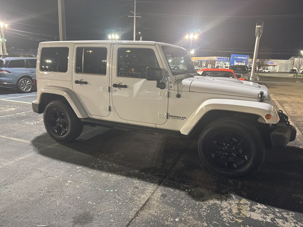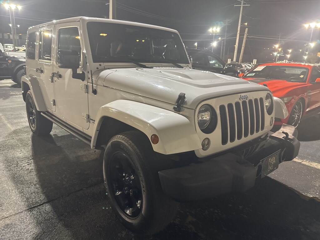 2015 Jeep Wrangler Unlimited High Altitude 4D Sport Utility, 3.6L V6 24V VVT, 5-Speed Automatic, 4WD, Bright White Clearcoat, Black Leather, Altitude Grille, Black 3-Piece Hard Top, Black Accent Stitching, Black Front Bumper, Black High Gloss Exterior Mirror Cap, Black Jeep Grille Badge, Black Leather Seats w/Accent Stitch, Black Rear Bumper, Black/Chrome Screws Fuel Filler Door, Body Color 3-Piece Hard Top, Chrome/Leather Wrapped Shift Knob, Connectivity Group, Delete Sunrider Soft Top, Dual Top Group, Freedom Panel Storage Bag, Gloss Black Fascia Applique, Heated Front Seats, High Gloss Black Center Wheel Caps, Jeep Wrangler Altitude Edition, Low Gloss Black Wrangler Decal, MOPAR Black Tail Lamp Guards, Piano Black Interior Accents, Power Bulge Hood, Premium Black Sunrider Soft Top, Quick Order Package 24L Altitude, Rear Window Defroster, Rear Window Wiper/Washer, Tire Pressure Monitoring Display, Vehicle Information Center, Wheels: 18 x 7.5 5-Spoke Gloss Black Aluminum, 18 x 7.5 Polished Satin Carbon Wheels, 3.21 Rear Axle Ratio, 4-Wheel Disc Brakes, 40GB Hard Drive w/20GB Available, 5-Year SIRIUSXM Traffic Service, 5-Year SIRIUSXM Travel Link Service, 8 Speakers, ABS brakes, Air Conditioning, Alloy wheels, AM/FM radio, Audio Jack Input for Mobile Devices, Auto-dimming Rear-View mirror, Brake assist, CD player, Cloth Bucket Seats, Compass, Cruise Control, Driver door bin, Driver vanity mirror, Dual front impact airbags, Electronic Stability Control, Front anti-roll bar, Front Bucket Seats, Front Center Armrest w/Storage, Front fog lights, Front reading lights, Fully automatic headlights, Heated door mirrors, Heavy Duty Suspension w/Gas Shocks, Illuminated entry, Integrated roll-over protection, Integrated Voice Command w/Bluetooth, Leather steering wheel, Leather Wrapped Steering Wheel, Low tire pressure warning, Occupant sensing airbag, Outside temperature display, Panic alarm, Passenger door bin, Passenger vanity mirror, Power door mirrors, Power steering, Power windows, Radio data system, Radio: Uconnect 130 AM/FM/CD/MP3, Radio: Uconnect 730N CD/DVD/MP3/HDD/NAV, Rear anti-roll bar, Remote keyless entry, Remote USB Port, Security system, SIRIUSXM Traffic, SIRIUSXM Travel Link, Split folding rear seat, Steering wheel mounted audio controls, Tachometer, Tilt steering wheel, Traction control, Trip computer, Uconnect Voice Command w/Bluetooth, Variably intermittent wipers, (Must finance with Ford Motor Credit to receive online pricing - see dealer for details.) Proudly, 4D Sport Utility, 3.6L V6 24V VVT,