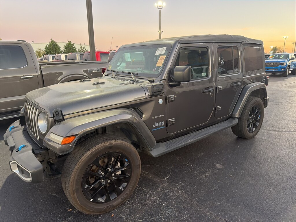 2023 Jeep Wrangler Sahara 4xe Wrangler Sahara 4xe, 4D Sport Utility, 2.0L I4 DOHC, 8-Speed Automatic, 4WD, Granite Crystal Metallic Clearcoat, Black, Navigation System, Quick Order Package 29P Sahara, 3.73 Rear Axle Ratio, 4-Wheel Disc Brakes, 9 Speakers, ABS brakes, Air Conditioning, Alloy wheels, AM/FM radio: SiriusXM, Apple CarPlay/Android Auto, Auto-dimming Rear-View mirror, Automatic temperature control, Brake assist, Compass, Cruise Control, Delay-off headlights, Driver door bin, Driver vanity mirror, Dual front impact airbags, Dual front side impact airbags, Electronic Stability Control, Emergency communication system: SiriusXM Guardian, Front anti-roll bar, Front Bucket Seats, Front Center Armrest w/Storage, Front dual zone A/C, Front fog lights, Front License Plate Bracket, Front reading lights, Fully automatic headlights, Garage door transmitter, Heated door mirrors, Illuminated entry, Integrated roll-over protection, Leather Shift Knob, Low tire pressure warning, Occupant sensing airbag, Outside temperature display, Panic alarm, ParkView Rear Back-Up Camera, Passenger door bin, Passenger vanity mirror, Power door mirrors, Power steering, Power windows, Premium McKinley Trimmed Seats, Radio data system, Radio: Uconnect 4C Nav w/8.4" Display, Rear anti-roll bar, Rear reading lights, Rear seat center armrest, Remote keyless entry, Security system, Side Steps, Split folding rear seat, Sport Suspension, Steering wheel mounted audio controls, Tachometer, Telescoping steering wheel, Tilt steering wheel, Traction control, Trip computer, Variably intermittent wipers, Voltmeter, Wheels: 20" x 8" Fully Painted Aluminum, (Must finance with Ford Motor Credit to receive online pricing - see dealer for details.) Proudly, Wrangler Sahara 4xe, 4D Sport Utility, 2.0L I4 DOHC, 8-Speed Automatic, 4WD, Granite Crystal Metallic Clearcoat, Black, Navigation System, Quick Order Package 29P Sahara. Granite Crystal Metallic Clearcoat 8-Speed Automatic CARFAX One-Owner.