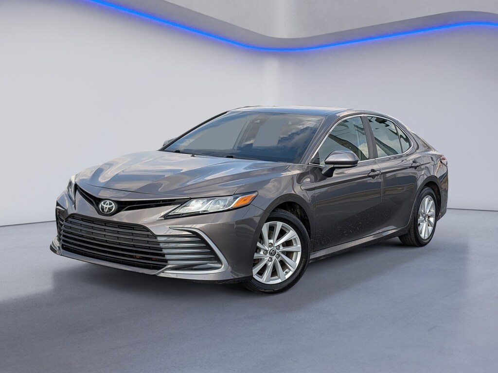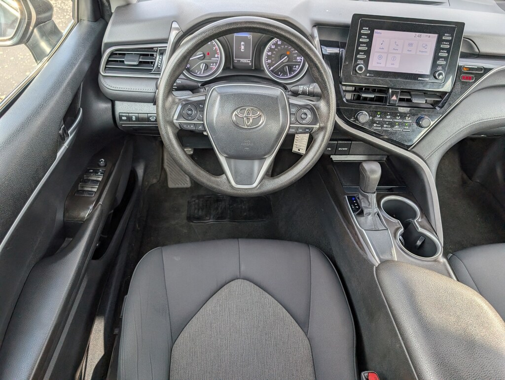 2021 Toyota Camry LE Cloth, 4-Wheel Disc Brakes, 6 Speakers, 7.5J x 17 Alloy Wheels, ABS brakes, Air Conditioning, Alloy wheels, AM/FM radio: SiriusXM, Apple CarPlay/Android Auto, Auto High-beam Headlights, Brake assist, Bumpers: body-color, Cruise Control, Delay-off headlights, Driver door bin, Driver vanity mirror, Dual front impact airbags, Dual front side impact airbags, Electronic Stability Control, Emergency communication system: Safety Connect with 1-year trial, Fabric Seat Trim, Four wheel independent suspension, Front anti-roll bar, Front Bucket Seats, Front Center Armrest, Front reading lights, Fully automatic headlights, Illuminated entry, Knee airbag, Low tire pressure warning, Occupant sensing airbag, Outside temperature display, Overhead airbag, Overhead console, Panic alarm, Passenger door bin, Passenger vanity mirror, Power door mirrors, Power driver seat, Power steering, Power windows, Radio data system, Radio: AM/FM Audio System, Rear anti-roll bar, Rear seat center armrest, Rear side impact airbag, Rear window defroster, Rearview Camera, Remote keyless entry, Security system, Speed-sensing steering, Split folding rear seat, Steering wheel mounted audio controls, Tachometer, Telescoping steering wheel, Tilt steering wheel, Traction control, Trip computer, Variably intermittent wipers, (Must finance with Ford Motor Credit to receive online pricing - see dealer for details.) Proudly, Cloth. Silver 8-Speed Automatic
