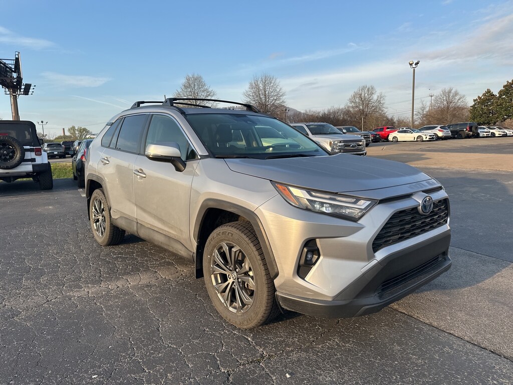 2023 Toyota RAV4 Hybrid XLE Premium 2.5L 4-Cylinder, 3 Spoke Leather Steering Wheel, 4-Wheel Disc Brakes, 6 Speakers, ABS brakes, Air Conditioning, Alloy wheels, AM/FM radio: SiriusXM, Auto High-beam Headlights, Automatic temperature control, Axle Ratio: TBD, Brake assist, Bumpers: body-color, Cruise Control, Delay-off headlights, Driver door bin, Driver vanity mirror, Dual front impact airbags, Dual front side impact airbags, Electronic Stability Control, Emergency communication system: Safety Connect (1-year trial), Four wheel independent suspension, Front anti-roll bar, Front Bucket Seats, Front Center Armrest, Front Door Smart Key System w/Push Button Start, Front dual zone A/C, Front fog lights, Front reading lights, Front Sport Seats, Fully automatic headlights, Heated door mirrors, Illuminated entry, Knee airbag, Lane Departure Warning System, Leather Shift Knob, Low tire pressure warning, Occupant sensing airbag, Outside temperature display, Overhead airbag, Overhead console, Panic alarm, Passenger door bin, Passenger vanity mirror, Power door mirrors, Power driver seat, Power Liftgate, Power moonroof, Power steering, Power windows, Radio data system, Radio: AM/FM/XM Audio System, Rear anti-roll bar, Rear seat center armrest, Rear window defroster, Rear window wiper, Rearview Camera, Remote keyless entry, SofTex Seat Trim, Speed-sensing steering, Split folding rear seat, Spoiler, Steering wheel mounted audio controls, Telescoping steering wheel, Tilt & Slide Moon Roof, Tilt steering wheel, Traction control, Trip computer, Turn signal indicator mirrors, Variably intermittent wipers, Wheels: 18 x 7.0J 5-Spoke Sport Alloy, (Must finance with Ford Motor Credit to receive online pricing - see dealer for details.) Proudly, 2.5L 4-Cylinder. eCVT Clean CARFAX.
