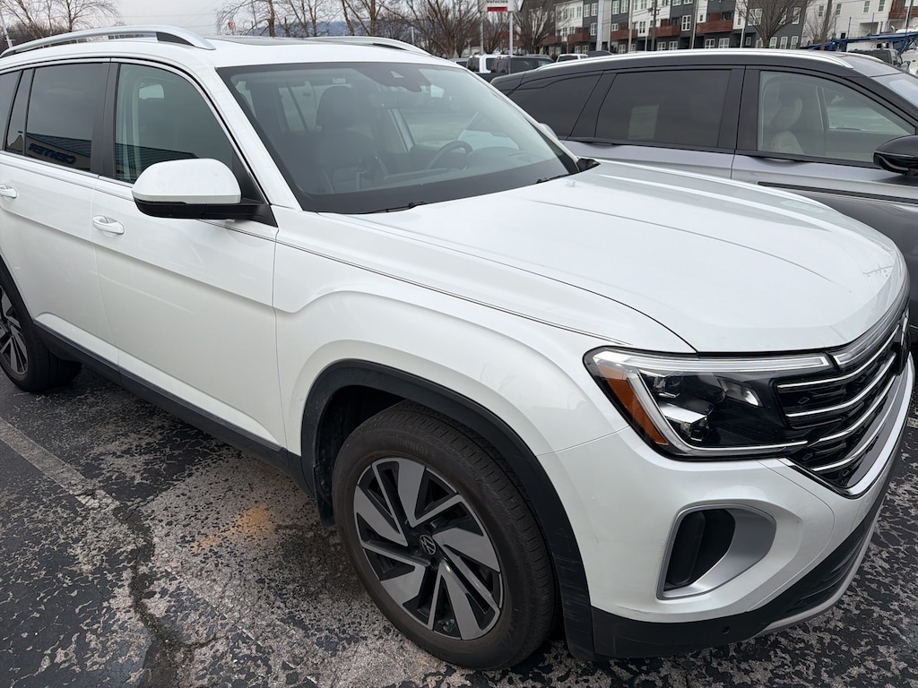 2024 Volkswagen Atlas 2.0T SEL Atlas 2.0T SEL, 4D Sport Utility, 2.0L TSI, 8-Speed Automatic with Tiptronic, AWD, Titan Black Leather, 3.60 Axle Ratio, 3rd row seats: split-bench, 4-Wheel Disc Brakes, 6 Speakers, ABS brakes, Air Conditioning, Alloy wheels, AM/FM radio: SiriusXM with 360L, Auto High-beam Headlights, Auto-dimming Rear-View mirror, Automatic temperature control, Brake assist, Bumpers: body-color, Compass, Cruise Control, Delay-off headlights, Driver door bin, Driver vanity mirror, Dual front impact airbags, Dual front side impact airbags, Electronic Stability Control, Emergency communication system: VW Car-Net Safe & Secure 5-year, Four wheel independent suspension, Front anti-roll bar, Front Bucket Seats, Front Center Armrest, Front dual zone A/C, Front fog lights, Front reading lights, Fully automatic headlights, Heads-Up Display, Heated and Cooled Seats, Heated door mirrors, Heated rear seats, Heated steering wheel, Heated/Actively Ventilated Front Bucket Seats, Illuminated entry, Low tire pressure warning, Memory seat, Navigation System, Occupant sensing airbag, Outside temperature display, Overhead airbag, Overhead console, Panic alarm, Passenger door bin, Passenger vanity mirror, Perforated Vienna Leather Seating Surfaces, Power door mirrors, Power driver seat, Power Liftgate, Power moonroof: Panoramic, Power passenger seat, Power steering, Power windows, Radio data system, Radio: MIB3 Discover Media w/Navigation, Rain sensing wipers, Rear air conditioning, Rear anti-roll bar, Rear reading lights, Rear seat center armrest, Rear window defroster, Rear window wiper, Rearview Camera, Remote keyless entry, Security system, Speed-sensing steering, Split folding rear seat, Spoiler, Standard Suspension, Steering wheel mounted audio controls, Tachometer, Telescoping steering wheel, Tilt steering wheel, Traction control, Trip computer, Turn signal indicator mirrors, Variably intermittent wipers, Ventilated front seats, Wheels: 20 2-Tone Machined Alloy, (Must finance with Ford Motor Credit to receive online pricing - see dealer for details.) Proudly, Atlas 2.0T SEL, 4D Sport Utility, 2.0L TSI, 8-Speed Automatic with Tiptronic, AWD, Titan Black Leather. Pure White 8-Speed Automatic with Tiptronic